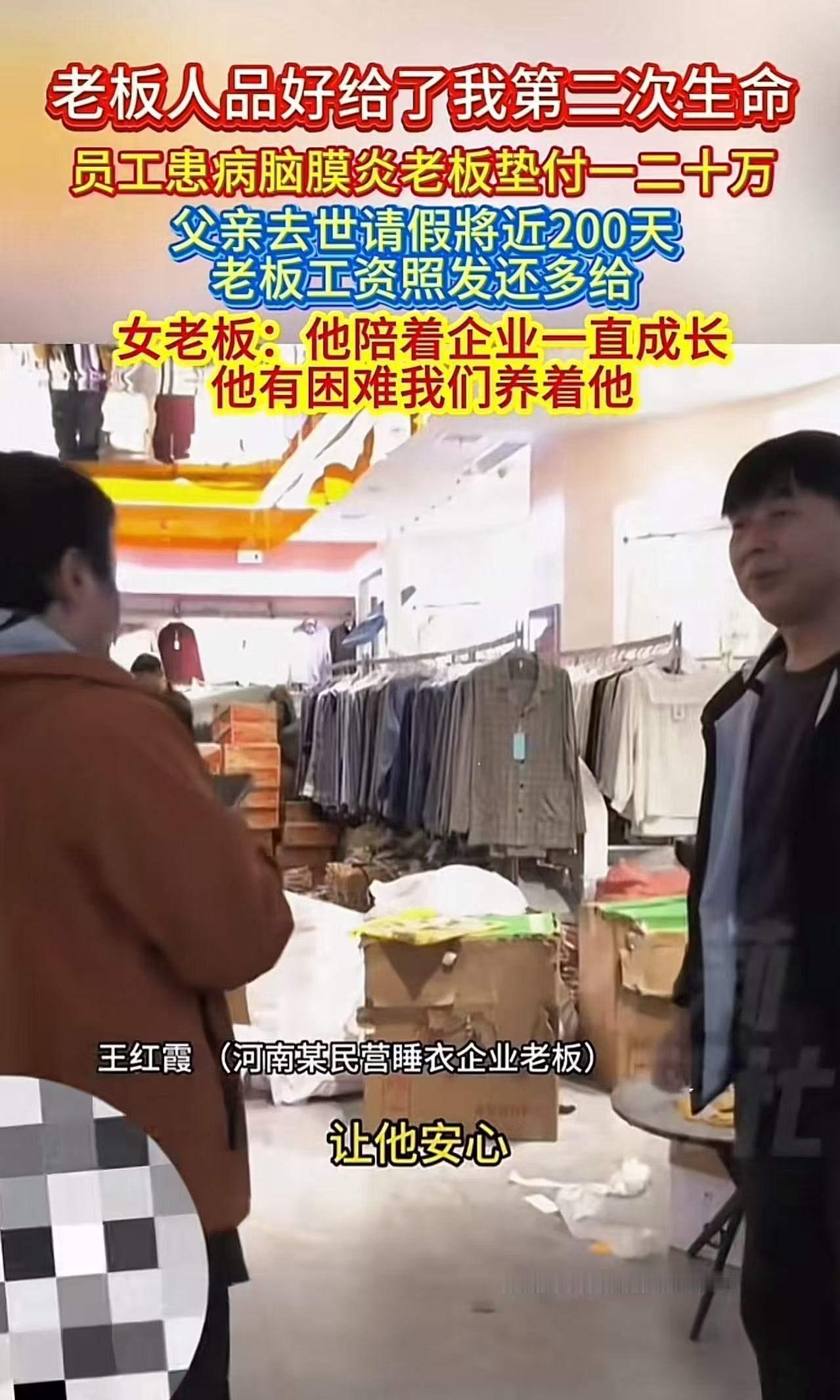 “这个女老板火了!”员工父亲生病去世,请假200多天,老板不仅没有开除他,还工资照发!后来员工得了脑膜炎,老板还主动垫付了一二十万医药费!员工:“老板人品好,给了我第二次生命!”女老板:“他陪着企业一直成长,他有困难我当然要养着他!” 这个女老板火了!但火的不仅仅是她的善心,更是她身上那份令人动容的责任感和人性光辉。 故事的主人公,是一家中小企业的普通员工,他叫李明(化名)。几年前,他带着满腔热忱加入这家公司,视这里为第二个家。然而,人生的风暴总是突如其来。那年,李明的父亲突然重病,急需手术和长时间的照料。面对高昂的医药费和家庭的困境,他请求公司给予理解和支持。 令人震惊的是,女老板王琳(化名)没有犹豫半秒。她不仅批准了他的请假——长达200多天,还坚持每个月照常发放工资。有人说,这只是责任心的体现,但在当今这个利益至上的社会,这样的善意似乎变得越来越稀缺。 更令人动容的是,李明的健康状况在休假期间急剧恶化,他不幸患上脑膜炎,病情危重。面对这样的危机,王琳再次挺身而出。她不仅安排最好的医疗资源,还主动垫付了二十多万的医药费,确保李明能够得到最好的治疗。 “他陪着企业一直成长,他有困难我当然要养着他。”这是王琳对员工的理解,也是她对人性善良的坚信。她曾说:“企业不仅是赚钱的工具,更是责任和温暖的载体。” 这段故事在朋友圈里迅速传开,网友们纷纷点赞:有人感叹“这样的老板难得一遇”,有人说“人性本善,善待员工才是真正的企业责任”。更有人开始反思:我们身边有多少像王琳一样的“隐形英雄”?他们用行动诠释了什么叫“责任、善良和担当”。 但也有人提出疑问:这样的善行是否会成为“被利用”的风险?在现实中,善良是否会被误解为软弱?这些声音让人深思。 其实,王琳的行为不仅仅是善意的体现,更是一种深层次的企业文化。在她看来,一个企业的真正价值,不是账面上的数字,而是员工的幸福感和归属感。她用行动告诉员工:无论遇到多大的困难,公司都愿意与你站在一起。 更重要的是,这样的故事也在悄然改变着社会的价值观。我们常说“人性善良”,但在利益和竞争的压力下,善良似乎变得越来越稀缺。而王琳的故事,就像一股清流,提醒我们:善良不是软弱,而是力量。 或许,正是因为有像她这样的人存在,社会才会变得更加温暖。她用实际行动告诉每一个人:只要心存善念,责任在肩,就没有过不去的坎。 这故事还在继续。李明的康复,他的家庭的希望,都是这份善良的最好见证。而我们,是否也能从中汲取一些力量?在这个浮躁的时代,或许我们更需要一份“善意的坚持”。 让我们为王琳点赞,也为那些在平凡岗位上坚守善良的人鼓掌。因为,正是他们,让这个世界变得更美好。