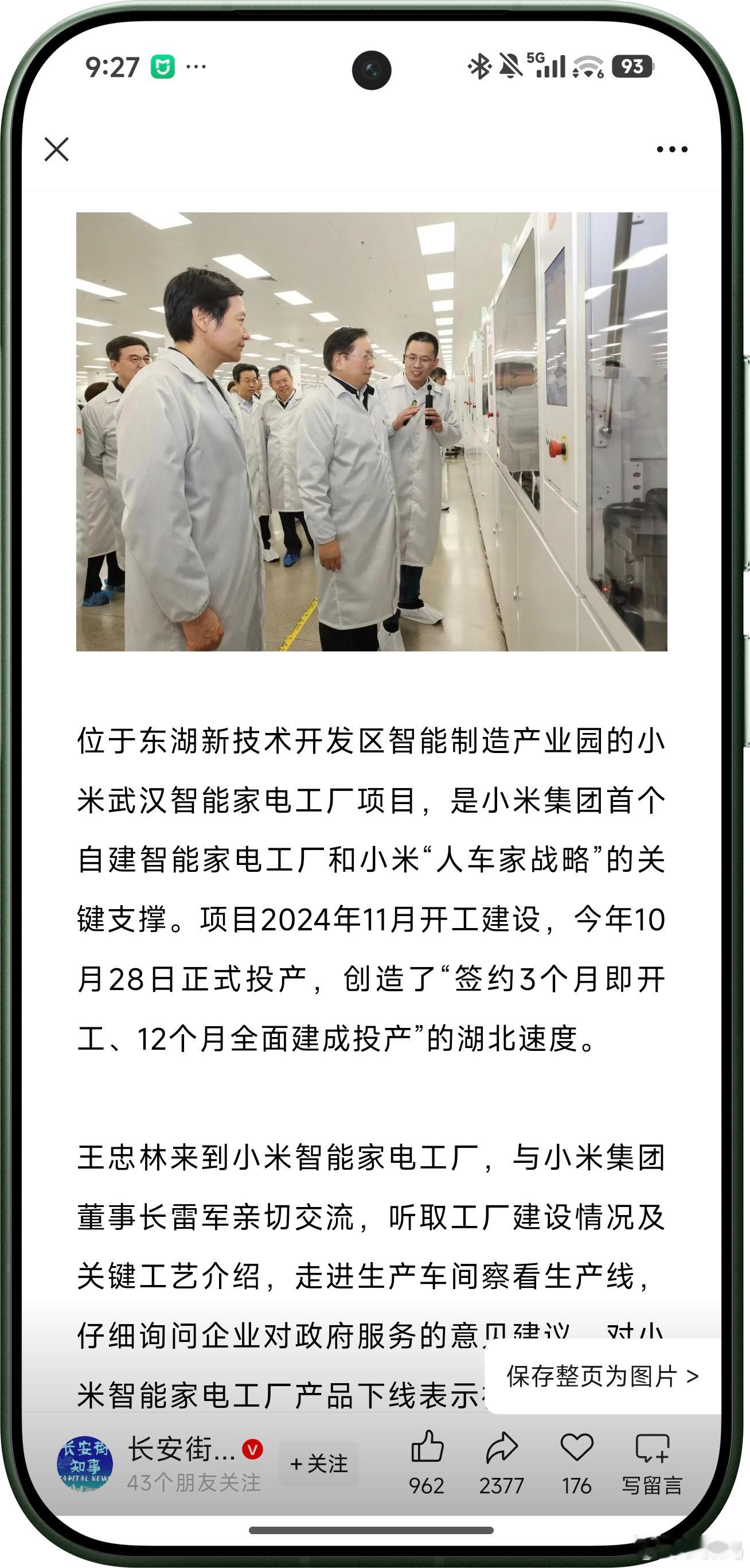 湖北省省委书记参观了小米这个大家电工厂,并且向雷老板点赞表示了祝贺。