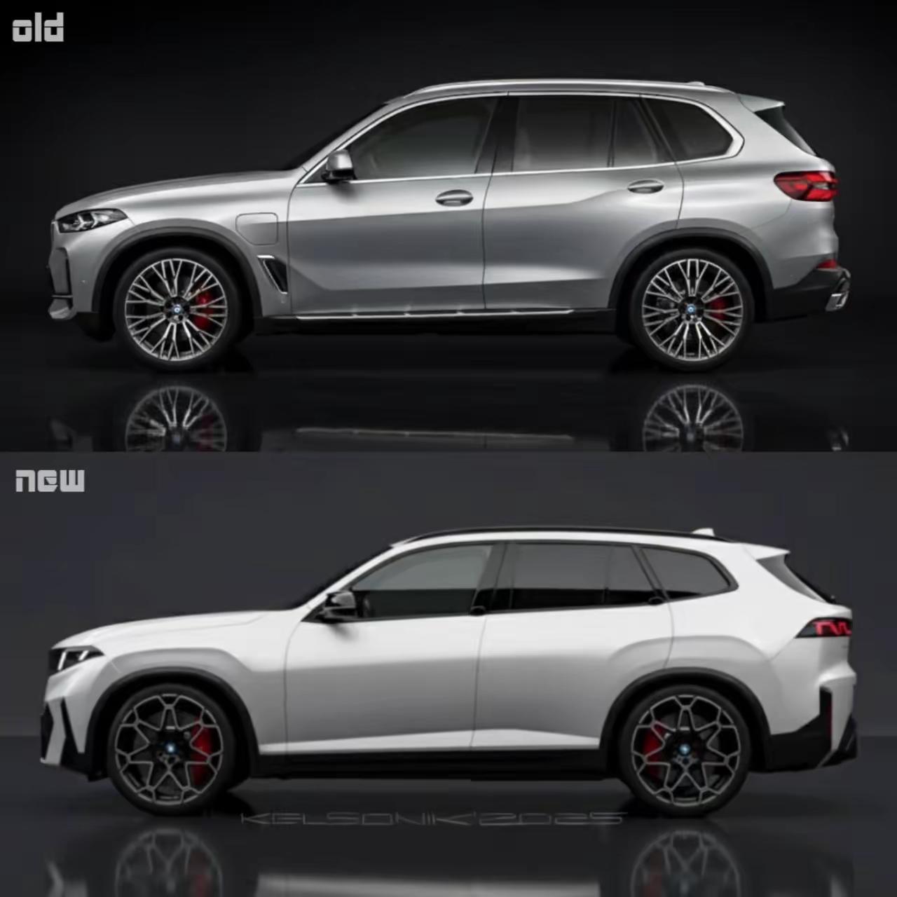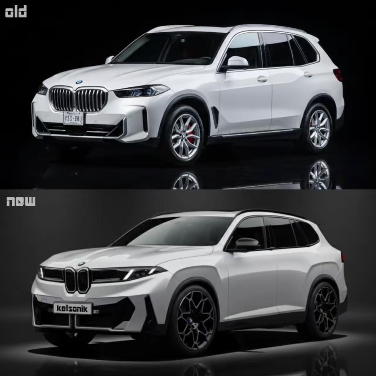 宝马新一代X5官方图片发布, 大家觉得和现款哪个好看? 主要的变化就是前脸格栅: 把现款经典的横向"双肾"格栅,尺寸缩小,调整成纵向布局的"小双肾",远看像两个“鼻孔”。 还有就是前后灯组的变化: 前大灯与格栅相连,灯角更尖锐,内部采用分层L型灯带设计。 其余的侧腰线以及整体尺寸和现款差不多。 新一代X5的设计增加了科技感,但是也抛开了大家熟悉的宝马传统形象! 它变得更加科技、前卫, 但最终市场是否会为这种"怪异"但"时尚"的革新买单呢? 懂车帝车友圈宝马宝马新一代X5懂车帝宝马X5车友圈 新手上路,定期更新! 劳烦关注,一定回关!