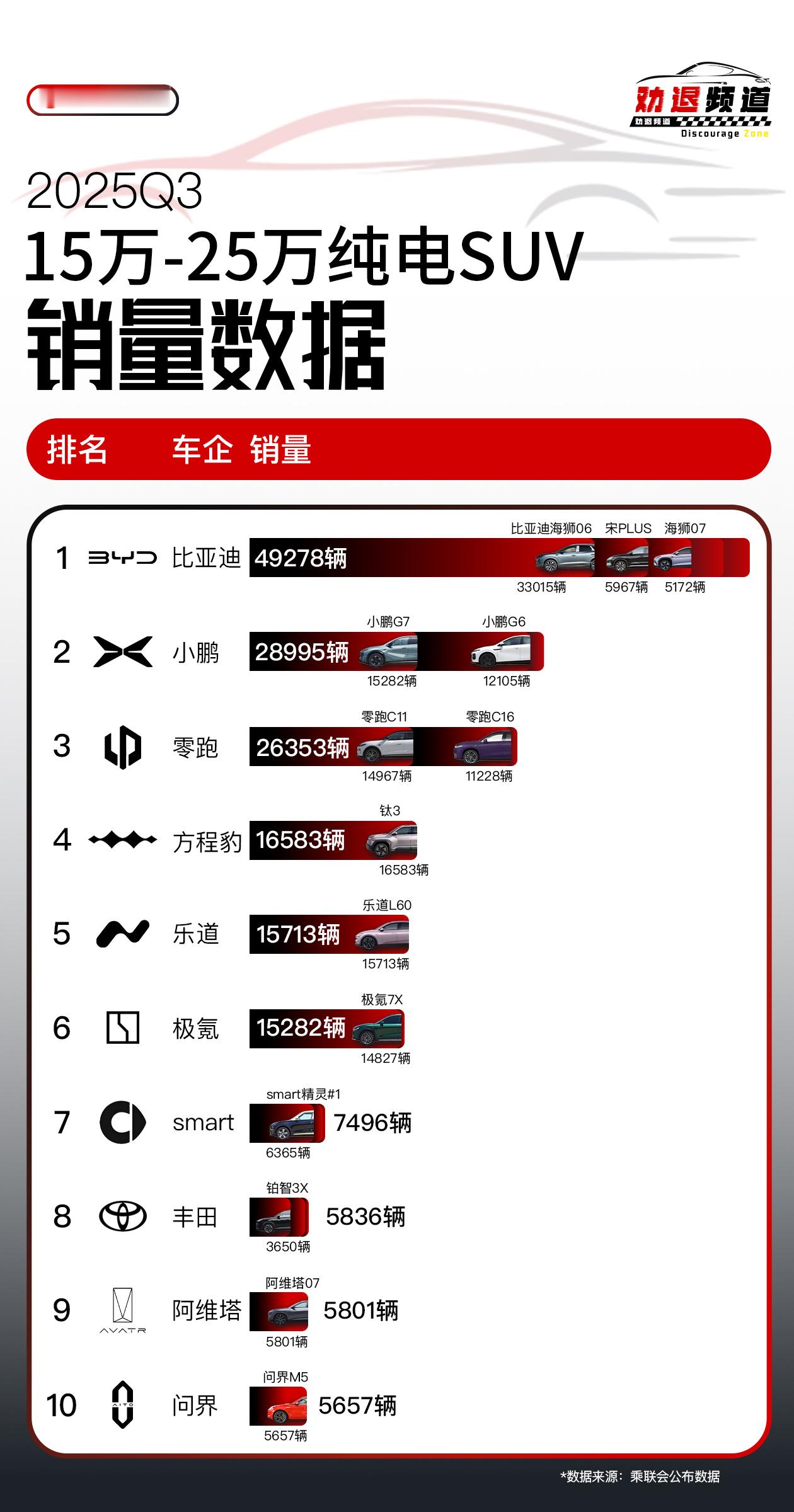 乘联会公布了15~20万纯电SUV的销量数据