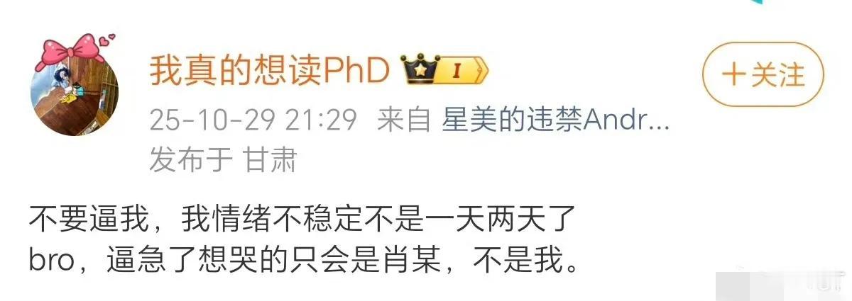 看这架势,杨某媛还是忍不下这口气。 此事法院已经审理结束,学校也已经发了通报,相关责任人也受到了处理,她自己目前来看是全身而退,丝毫没有受到任何损失。 可是在这样的情况下,这两天她接连在微博上发飙,称自己不是诬告,不会给肖某及家人道歉,更不会原谅他们。不仅口气强硬,态度依然嚣张。 其实此事大多数网友现在并不关注,因为说再多也没有用。大家目前所关注的,应该是肖某是否追究杨某媛的相关责任。但到目前没有这个方面的消息。既然肖某都是这样的态度,其他人对此也没有什么可说的。 不过从目前来看,这个杨某媛真是把自己当个人物了,丝毫没有消停的意思。既然她觉得还不过瘾,那么大家有空闲的时候,是不是可以再与她理论理论?反正闲着也是闲着。