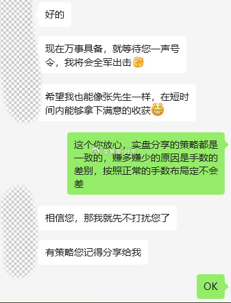 你们完全不需要担心跟上实盘后,实盘所分享的策略是不一样的,也不需要担心扛单、频繁交易等等类似问题。在叶生我这里,我敢用我的人格担保,绝对没有此事发生[不愧是你]。可能我这样说你们会不相信,那我们换个角度想想,如果我一直虚假的做事,微博赚、实盘亏,或报喜不报忧的方式对待你们,我也不可能会有这么多实盘好友还愿意一直跟我合作,期间合作时间最长的客户都有7、8年的时间,而且很多老客户都知道我公司在那里,我家在那里,如果我真的不实事求是,你们觉得我老客户不会来过来抄我家吗?所以,对于你有之前的境遇我表示惋惜,但来到我这里,是绝不会像你之前的所谓老师一样,我知道你会心想,光说不练假把式,那就要等你先亲身过来经历之后,自然就知道结果。