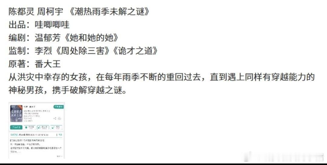 陈都灵周柯宇将合作潮热雨季未解之谜[傻眼]