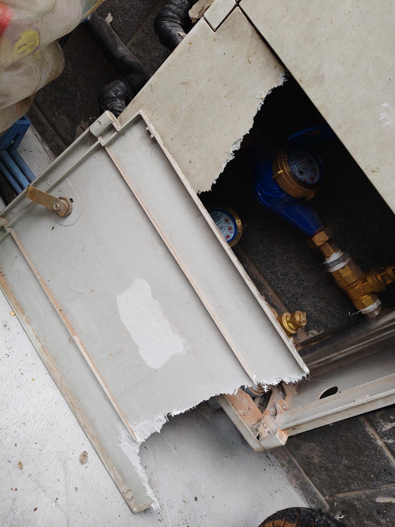 笔者今日进出长沙某小区,在小区大门口发现才安装不久的水表箱竟然有一扇门破损,有一边脱开掉在地上,图片如下,请问有谁知道这是什么材料做成的? 分享城市新鲜事