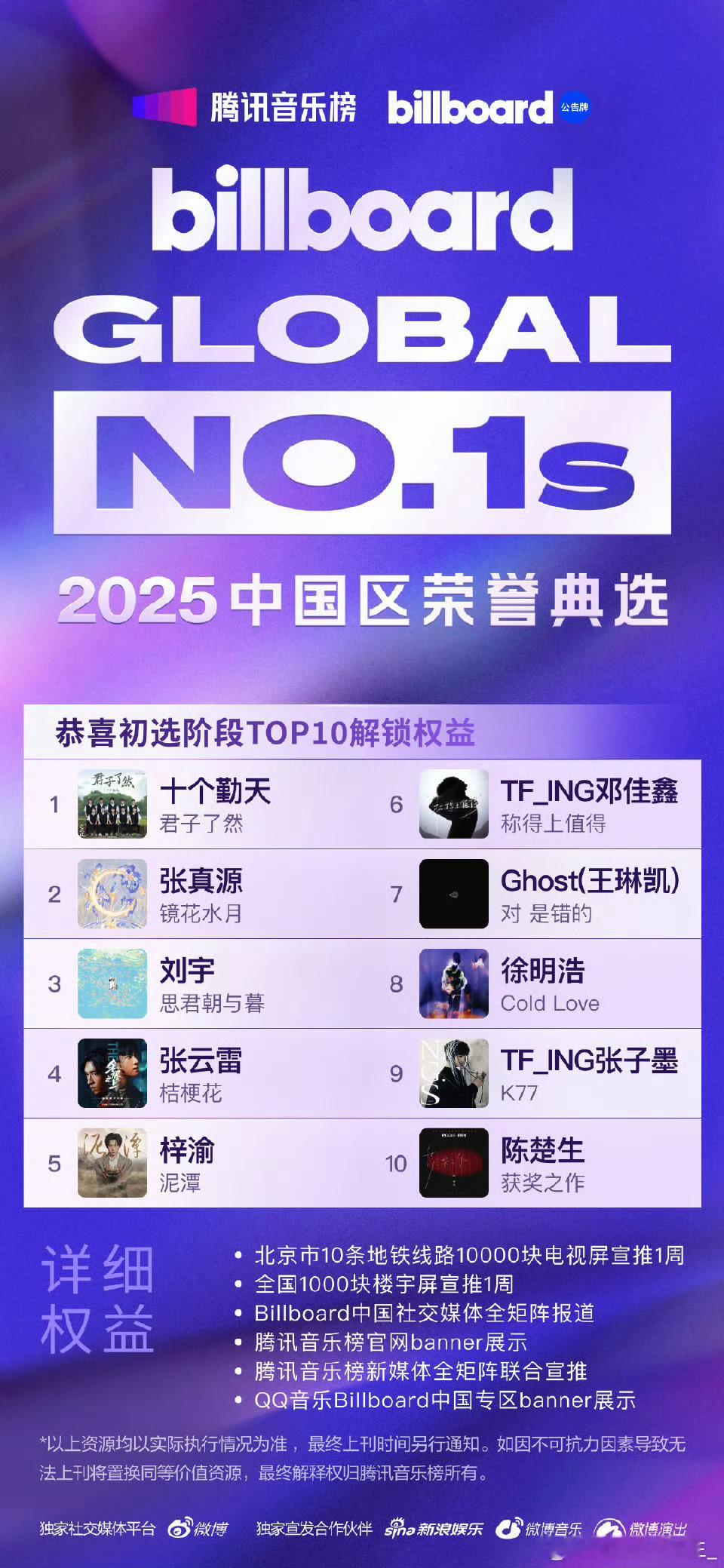 Billboard腾讯音乐榜全球级荣誉评选梓渝《泥潭》再度上榜,已经收获了好多榜单