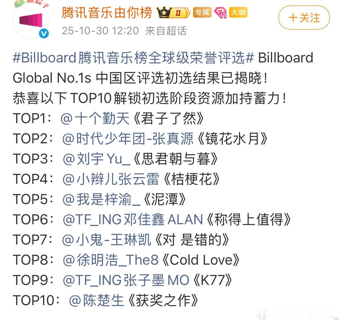 Billboard腾讯音乐榜全球级荣誉评选梓渝《泥潭》再度上榜,已经收获了好多榜