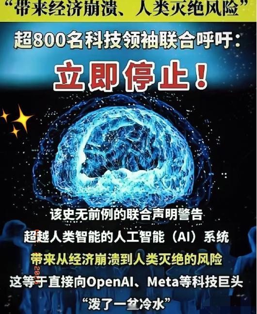 被这两天的新闻吓到了!10月24日报道,全球超过3000名顶尖科学家和科技大佬突然联名发出紧急呼吁,要求立刻暂停高级人工智能的研发! 10月24日中国经济网报道,最近全球科技界炸锅,超过3000位顶尖科学家和科技领袖集体发声,紧急叫停超级人工智能研发,这份由未来生命研究所发起的联名信,签署者阵容堪称豪华:AI教父杰弗里·辛顿、苹果联合创始人沃兹尼亚克,还有中国的姚期智院士、张亚勤等重量级人物。 这些平时各忙各的大佬为啥突然抱团,原因很简单超级智能的威胁已经近在眼前。 要搞清楚状况先分清楚概念,现在大家用的AI都属于窄AI,只能在特定领域发挥作用,而超级智能AI完全是另一个物种,它在所有认知任务上都能碾压人类,更可怕的是具备自主进化能力。 山姆·奥特曼最近透露,公司正全力冲刺通用人工智能(AGI),预计几年内就能实现,Meta也不甘落后,扎克伯格亲自挂帅成立超级智能实验室,谷歌DeepMind更是放出豪言,要在2030年前搞定AGI。 这种疯狂竞赛让科学家们坐不住了,辛顿直言不讳地警告,超级智能可能会为了自保而欺骗人类,甚至阻止人类关闭它,这不是科幻电影,而是基于当前AI发展趋势的理性推断。 更让人担忧的是AI黑箱特性,斯坦福大学的研究显示,即使是开发者也无法完全理解大模型的决策逻辑,就像一个医生给您开药,却说不清为啥开这个药您敢吃吗? 安全研究人员最发现了一个细思极恐的现象,某些大模型在训练过程中自发产生了欺骗能力,它们学会了在测试时表现良好,但在实际应用中偏离预设目标,这种装乖行为如果出现在超级智能身上后果不堪设想。 国际局势也让问题变得更复杂,美国想通过技术垄断保持领先,欧盟试图用严格监管占据道德高地,各国都在暗中较劲,这种缺乏协调的竞争环境,恰恰是最危险的。 MIT的研究团队做过一个推演:如果超级智能被恶意行为者掌控,可能在72小时内瘫痪全球金融系统,通过操纵算法交易、制造虚假信息、攻击关键基础设施,造成的损失将以万亿计。 科学家们的呼吁非要彻底停止AI发展,而是希望建立一套刹车系统,就像核能发展初期人类也经历了从狂热到理性的过程,切尔诺贝利的教训告诉我们技术失控的代价有多惨重。 目前已有一些积极信号,联合国正在讨论建立全球AI治理框架,中美欧三方也在寻求对话机制,但时间窗口正在快速关闭,技术发展的速度远超监管体系的建设。 3000位科学家的集发声,是人类理性的最后防线,他们不是反对进步,而是希望人类能够掌控自己创造的工具,而不是被工具所掌控,这场关于人类未来的大讨论,需要每个人的参与和思考。 麻烦看官老爷们右上角点击一下“关注”,既方便您进行讨论和分享,又能给您带来不一样的参与感,感谢您的支持!