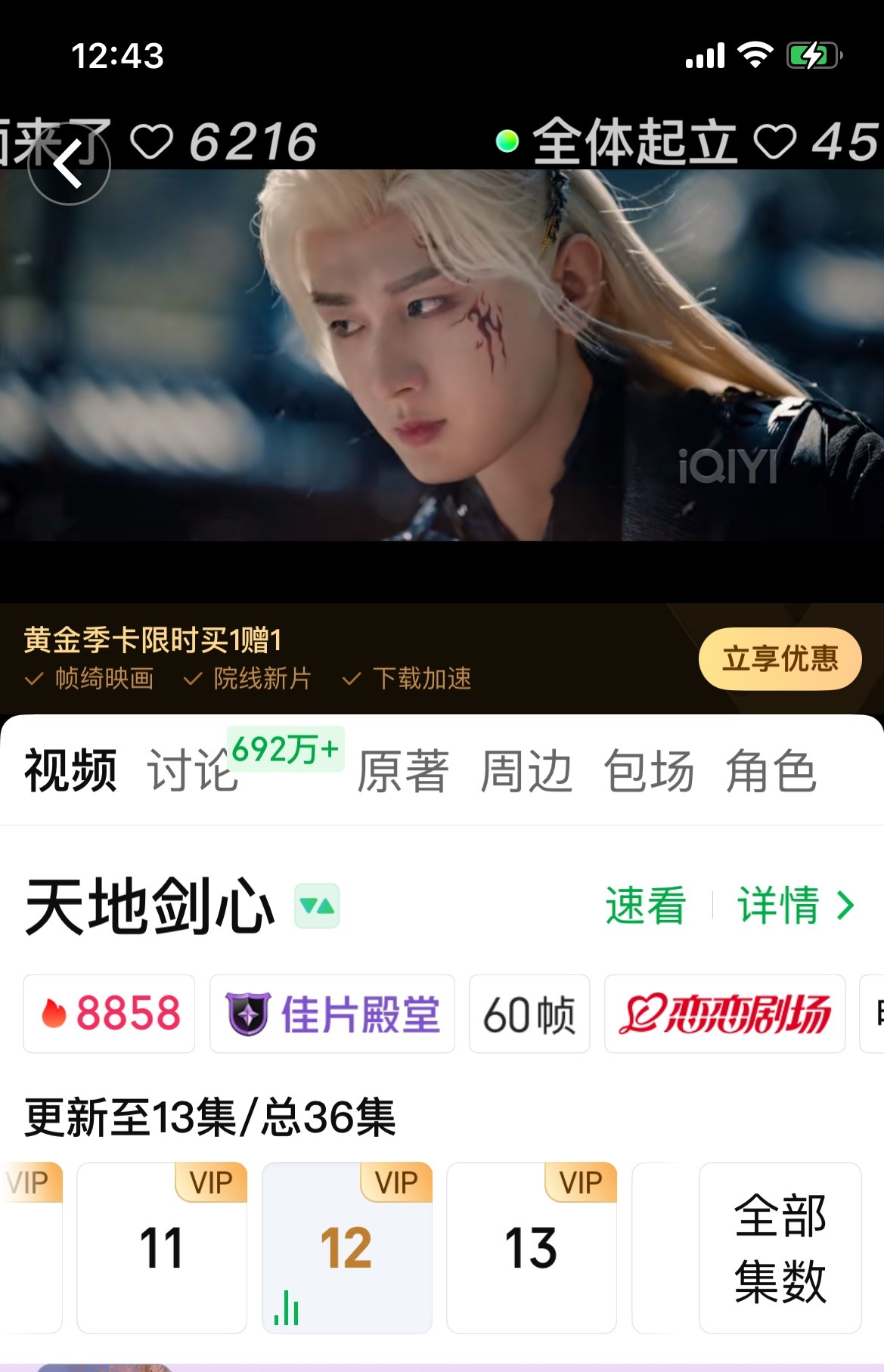 啊啊啊啊啊啊啊啊啊…… 天地剑心 爱奇艺热度值破9000+ 激动哭了[泪奔][泪