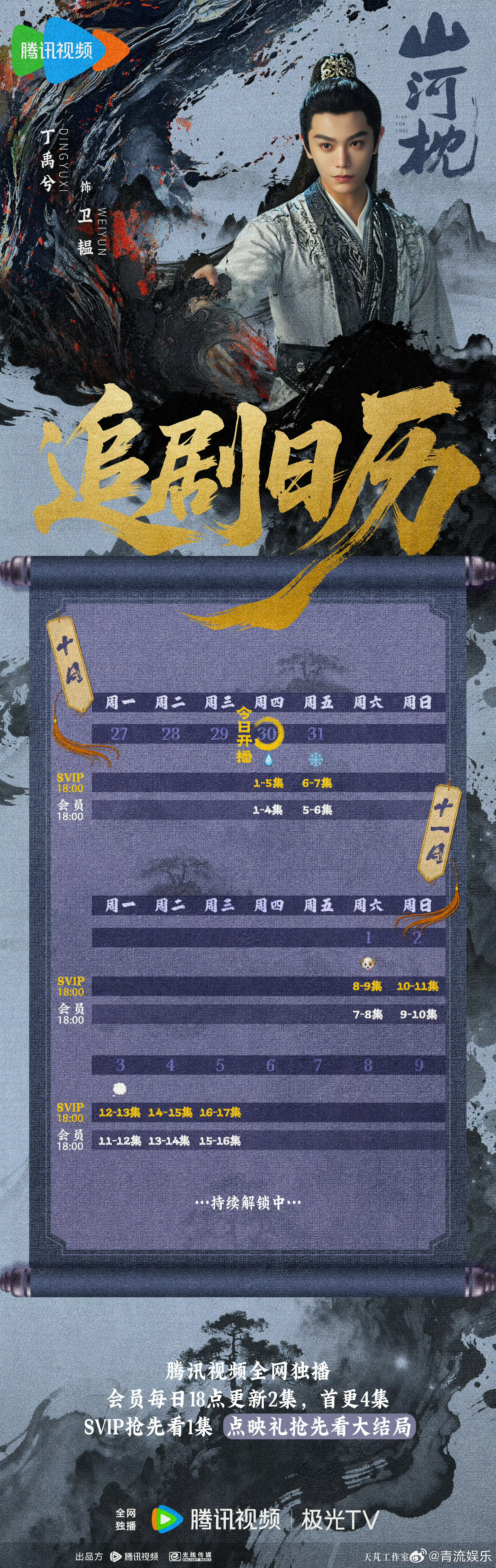 山河枕追剧日历《山河枕》追剧日历送达~今晚18:00,和卫韫一同共赴山河征程!丁禹兮山河枕丁禹兮卫韫