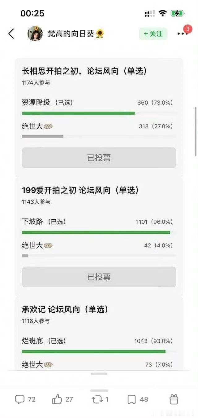 影视寒冬杨紫凭借自己的实力拿到女频一番好饼,这时候又开始说杨紫是资源咖了???我可记得杨紫接长相思,要久久爱,承欢记时被嘲走下坡路来着。想要好饼你得看看你担有没有这个实力打逆风盘,而不是盯着别人的好饼口水嘀嗒流[太开心]