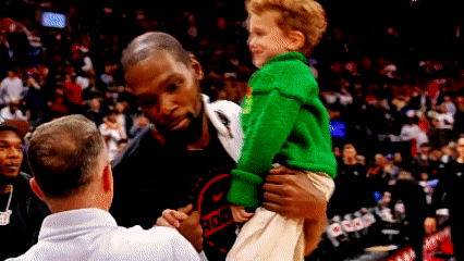 温馨一幕!杜兰特在火箭战胜猛龙后抱着小朋友,开心地逗笑拍照,因为球迷都知道他特别喜欢小孩,所以经常有球迷赛后把自己的孩子递给他抱。别误会,这不是杜兰特的孩子,他还没有结婚呢。出生于华盛顿东南部贫民区的杜兰特,8个月大时就被父亲遗弃,母亲完达·杜兰特同时干邮局分拣、校车司机、家政保洁和医院护工四份工,独自抚养他成长,全家曾居住在漏雨的公寓中。杜兰特非常孝顺,母亲希望他早点成家抱上孙子,这有点像中国的家庭。 杜兰特来到休斯顿后,顶着不小的压力。连续两场输球,特别对卫冕冠军雷霆的比赛中,关键时刻罚球不进,因6犯离场不能在加时赛帮助球队,杜兰特勇敢地承担起失败的责任。 本场比赛,杜兰特打了近37分钟,19投11中,三分球8投4中,拼下5个篮板,拿下全队最高的31分,正负值高达+20。是球队获胜的最大功臣,是场上绝对的攻防枢纽。怪不得大家都喜欢他,无论是他在场上还是场外。