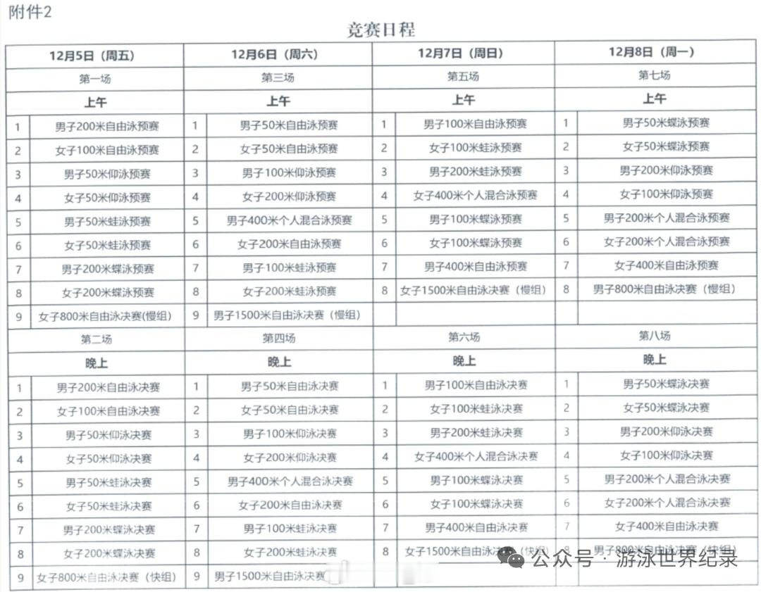 全国青年游泳锦标赛(12.5-8)竞赛日程