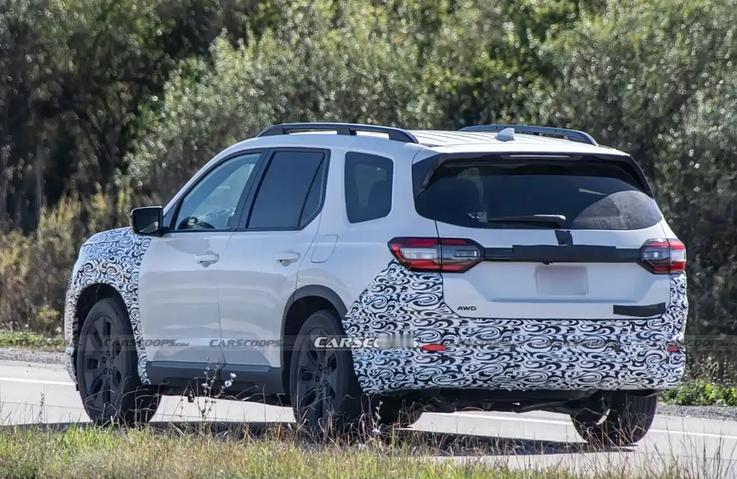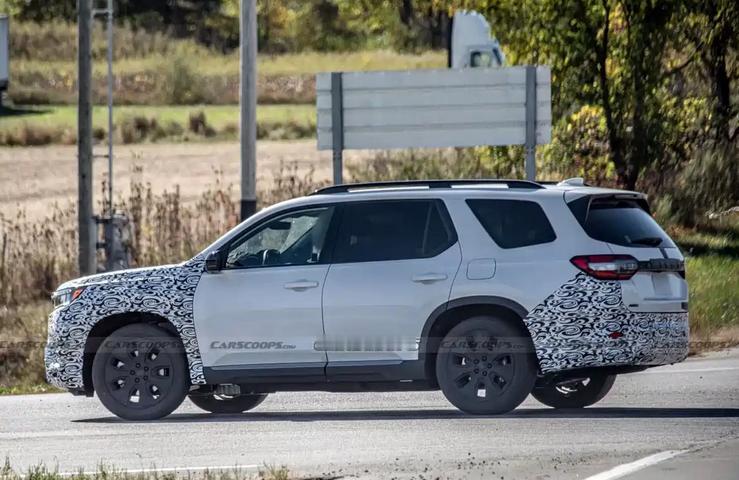 10月30日,汽节车社从相关渠道获取到了一组本田旗下中型SUV新款Pilot车型谍照。 作为中期改款车型,其计划于2026年夏/秋季正式发布。 外观方面,虽然该车车头被覆盖较为严格的伪装贴纸,但通过细节能够看出其换装了更具越野风格的前格栅以及或将更换为LED灯组。 车身侧面基本与现款保持一致。尾部方面,其同样针对后保险杠造型进行升级,并在两侧设有反光灯条等。 内饰方面,仅能看到该车或将换装更大尺寸的悬浮式中控屏以及全液晶仪表等。 动力方面,目前这款车配备的是3.5L V6发动机,最大功率为289马力,峰值扭矩为355牛·米。传动系统将会匹配10速自动变速箱,其中Elite、TrailSport版车型将会标配四驱系统。 作为了解,现款本田Pilot是其第四代车型,于2022年年底发布。 点个关注吧!汽节车社,车圈热点资讯每日一扫清!【来自懂车帝车友圈】