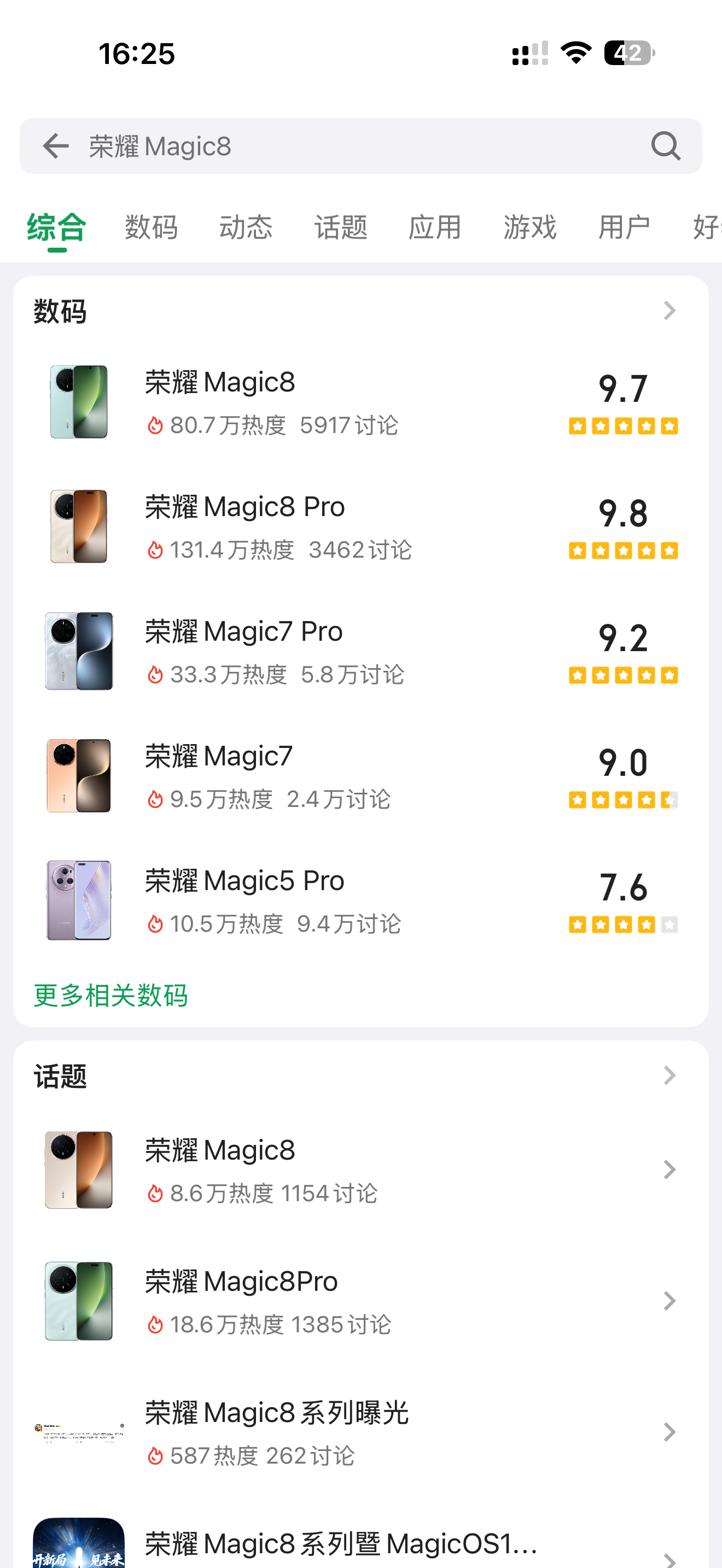 看了一下酷安的评分,荣耀Magic8和荣耀Magic8Pro这个评分是今年旗舰机里面最高的,而且进去看看,基本都是好评,续航、性能这两点特别突出,都是比较满意。