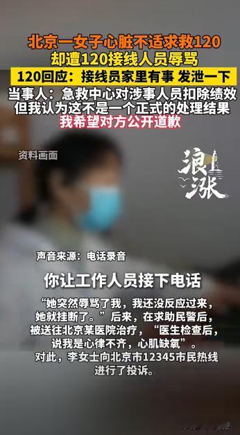 “严查到底!”10月11日,北京,一女子外出过程中,突然感觉心脏不舒服,于是她立即拨打了“120”求助,可接线员却非常不耐烦,不仅辱骂女子,还直接挂断电话!女子只能求助民警,这才顺利抵达医院救治。 网友:这简直就是在害命! “心脏病人求救遭 120 辱骂挂断!”10 月 27 日,这条消息在网上炸开了锅。 北京市民李女士的遭遇,让无数网友怒斥 “这是拿生命当儿戏”。 事情要从 16 天前的那个下午说起。 10 月 11 日,通州区小甸屯综合检查站旁,李女士驾车时突感不适。 胸口像压着巨石,呼吸急促,她慌忙靠边停车,手指发抖摸出手机。 拨通 120 的瞬间,她以为抓住了最后一根救命稻草。 “在哪?快说清楚!” 接线员的声音透着不耐烦。 “我在… 小甸屯… 检查站旁边…” 李女士气短,话语断断续续。 她是第一次来这儿,根本说不清具体位置。 “磨磨蹭蹭,你想不想活了?” 接线员突然拔高声音。 辱骂字眼接连传来,没等李女士回应,电话就被狠狠挂断。 手机滑落,眼泪涌了出来,胸口的疼痛更剧烈了。 绝望中,她想起 110,颤抖着再次拨号:“120 挂我电话… 救我…” “别慌!我们马上到!” 民警的安抚让她稍稍镇定。 十分钟后,警车呼啸而至,民警迅速将她扶上车送往医院。 路上,民警不停和她说话维持清醒:“再坚持下,快到了!” 抵达医院后,医生紧急处置,很快稳住了她的病情。 脱离危险的李女士,越想越心寒,当天就拨通了投诉电话。 10 月 17 日,120 急救中心终于来电回应。 “接线员家里有事情绪不好,不是针对你。” 工作人员解释道。 “扣了她当月绩效,这事就算了吧。” “这不行!” 李女士当即反驳,“这是漠视生命,必须公开道歉!” 对方只说 “再商量”,之后便没了音讯。 10 月 20 日她主动追问,得到的只有 “再等等”。 多次沟通无果,李女士联系了媒体。 事件曝光,舆论瞬间沸腾。 “家里有事不能成为失职的借口!” 网友怒评。 “接线员必须持证上岗,情绪管理得过关!” 有从业者发声。 按照急救中心调度制度,本应 “耐心受理每通呼救”。 涉事接线员显然触碰了职业红线。 10 月 28 日,急救中心终于松口。 涉事接线员手写道歉信,承认违反首接负责制。 并接受停职半个月的专项培训。 李女士看着道歉信,心里的石头落了一半。 但她更关心的是,如何避免类似事件重演。 当天,急救中心发布通知,开展全员职业素养培训。 培训内容涵盖情绪管理、沟通技巧和应急处置。 还升级了调度系统,新增定位辅助功能。 负责人公开表态:“每通 120 都连着生命线,绝不能失守。” 如今,李女士的心脏功能恢复良好,复查时医生夸她状态不错。 只是偶尔想起那天的经历,仍会心跳加速。 她养成了随身携带急救卡的习惯,上面写着详细住址。 也常给亲友科普:“紧急情况多找渠道求助,别放弃。” 涉事接线员已重返岗位,接线记录里满是耐心询问。 “您别急,慢慢说,我们马上派车。” 她的语气温柔了许多。 急救中心的培训仍在继续,考核新增了情绪模拟题。 调度室墙上,“有警必接,有求必应” 的标语格外醒目。 这场风波,终以整改收场,却留下了长久的警示。 120 这条生命线,容不得半点冷漠与疏忽。 接线员的每句话、每个举动,都可能关乎生死。 唯有坚守职责,才能守护好每个求助者的希望。 信源:女子心脏不适求助120,遭辱骂并挂电话,律师:侵害人格尊严,索赔! 2025-10-28 16:03·零度时评