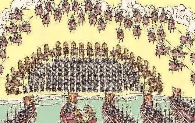 却月阵! 刘裕在灭燕之战中使用的战车阵,其核心思想在于利用战车的防御能力,结合步兵和弓兵的攻击力,形成一个移动的堡垒。这种战术并非刘裕首创,而是古代战争中一种常见的利用车辆进行防御和攻击的策略的演变和创新。 早在春秋战国时期,车战就是重要的作战方式。当时的战车是主要的突击力量。随着骑兵的发展,战车的地位逐渐下降,但其防御功能仍然被重视。汉代就出现过利用战车组成营垒进行防御的记载。 刘裕的创新在于将战车的防御功能与步兵、弓兵的攻击相结合,形成了一种攻防兼备的移动阵型。他利用披着布幔的战车来抵御骑兵的弓箭,使得步兵和弓兵能够在相对安全的掩护下进行攻击。同时,轻骑兵作为游军,可以随时支援薄弱环节,保持阵型的灵活性。 种弧形如同半个月亮,因此得名“却月”。 却月阵最著名的运用是在刘裕北伐后秦的潼关之战中。面对后秦骑兵的猛烈冲击,刘裕指挥军队布下却月阵,成功地抵挡住了敌军的进攻,并抓住机会反击,最终击败了后秦军队,为东晋收复了关中地区。