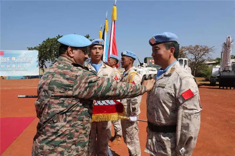 当地时间10月28日,中国第十五批赴南苏丹(瓦乌)维和部队授勋仪式在联合国驻南苏丹特派团(联南苏团)瓦乌超级营地中国工兵营区举行。来自我维和工兵分队、医疗分队的300余名官兵全部被授予联合国“和平荣誉勋章”,以表彰他们在执行维和任务期间的优异成绩和为维护南苏丹和平事业作出的突出贡献。