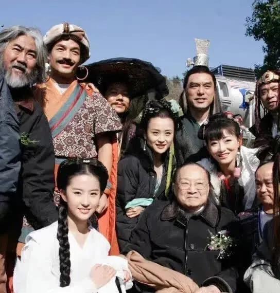 雨里一个人溜达到片场,没带助理,没喊人,就站在那儿看。 看了黄晓明打戏,说:“这孩子,有骨头。 ” 转头问刘亦菲:“手腕酸不酸? ” 没夸她美,没说她演得好,只轻声一句:“招式得有诗意。 ” 他不说杨过该怎样,但你心里清楚—— 十六年等一个人,等的不是时间,是那份不塌的劲儿。 合影时他站最后,笑得像邻家老爷爷。 没人知道,那一眼,比一万句指导都重。 他不改剧本,却改了演员的魂。 武侠的根,不在刀光剑影,而在一招一式里的那口气。