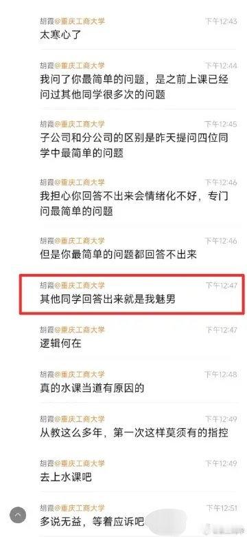 重庆工商大学涉事学生道歉大一女生因课堂提问未答出问题,被老师教育后,转身到互联网和朋友圈称女教师“魅男”。这位教师是法学院副教授,坚称要起诉其侵犯名誉权,如今涉事学生发文道歉!