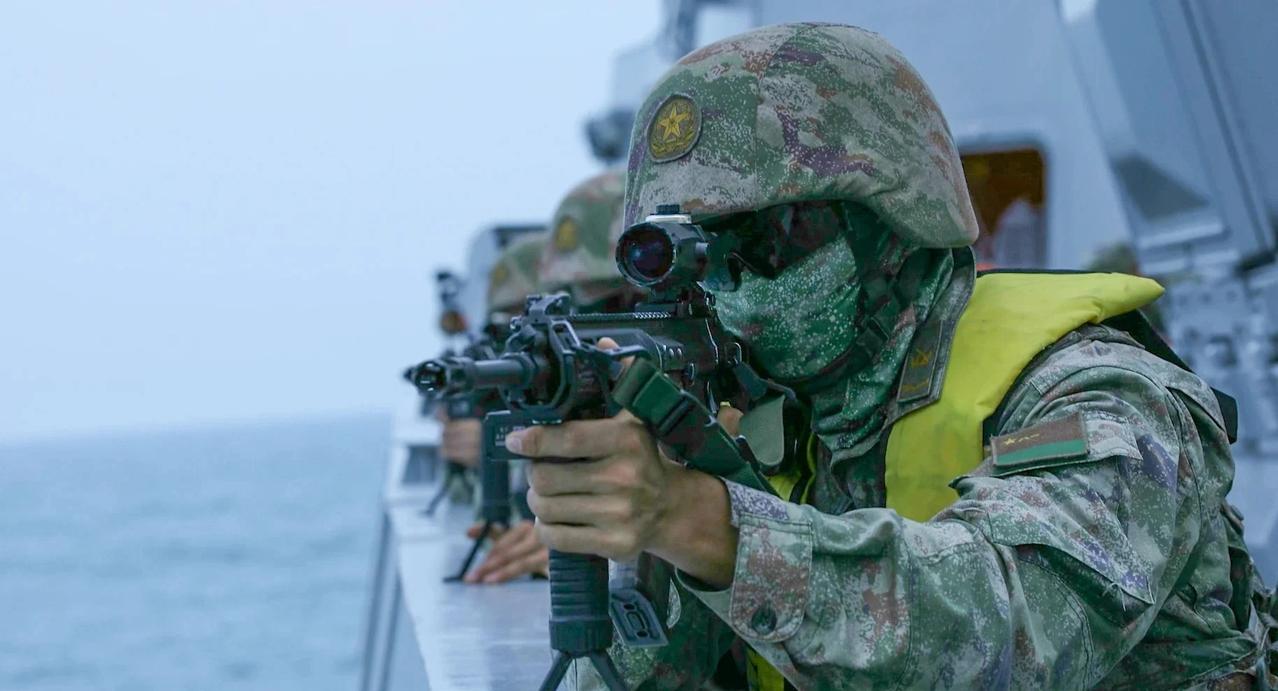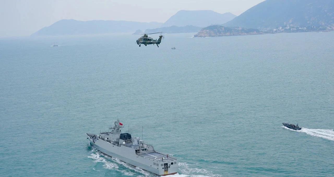 陆海空——联合巡逻 驻港部队组织开展联合巡逻训练军事 军事训练 人民解放军 驻港部队 军舰 军人 陆军 人民海军 空军