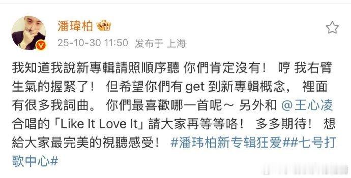 潘玮柏王心凌合作潘玮柏王心凌的合作也太会了!演唱会上官宣合作新歌《Like It Love It》,甜甜的歌名配上两人的经典风格,感觉这首新歌会成为循环播放的宝藏!