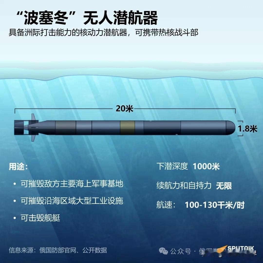 真的是太恐怖了!想想数十米的海啸,瞬间就可以摧毁一座沿海城市!这可能不是海地大地震或者火山爆发,而是愤怒的海神“波塞冬”的反击! 这个波塞冬可不是真正的神灵,而是俄罗斯最新试射的核动力无人潜航器!之所以将其命名为“波塞冬”,是因为其隐藏深海,来无影去无踪,且可以无限游弋,轻松打击航母战斗群,甚至可以打击沿海城市,引发巨大海啸!其破坏力相当惊人! 在海燕之后,俄罗斯试射的这款武器可以说毫无敌手。不得不说,俄罗斯太强悍了!波塞冬海神 聚焦俄罗斯乌克兰局势 俄罗斯 军事 国际