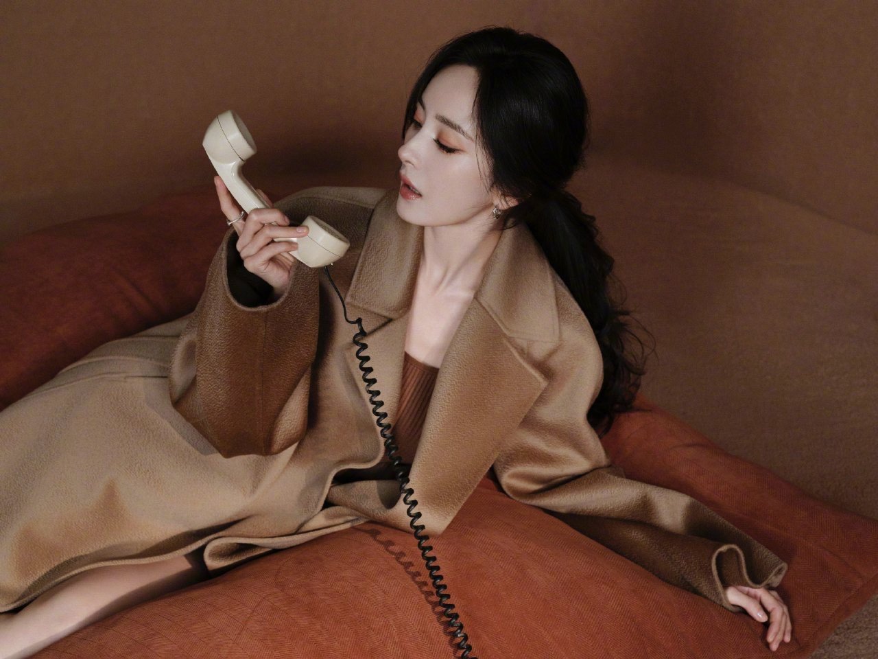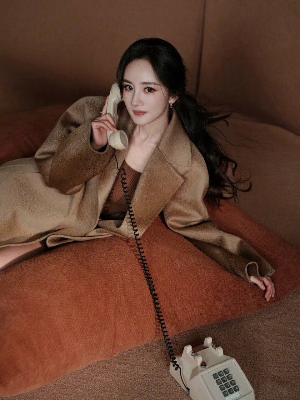 杨幂大衣直播造型杨幂焦糖look 把大衣穿的好高级
