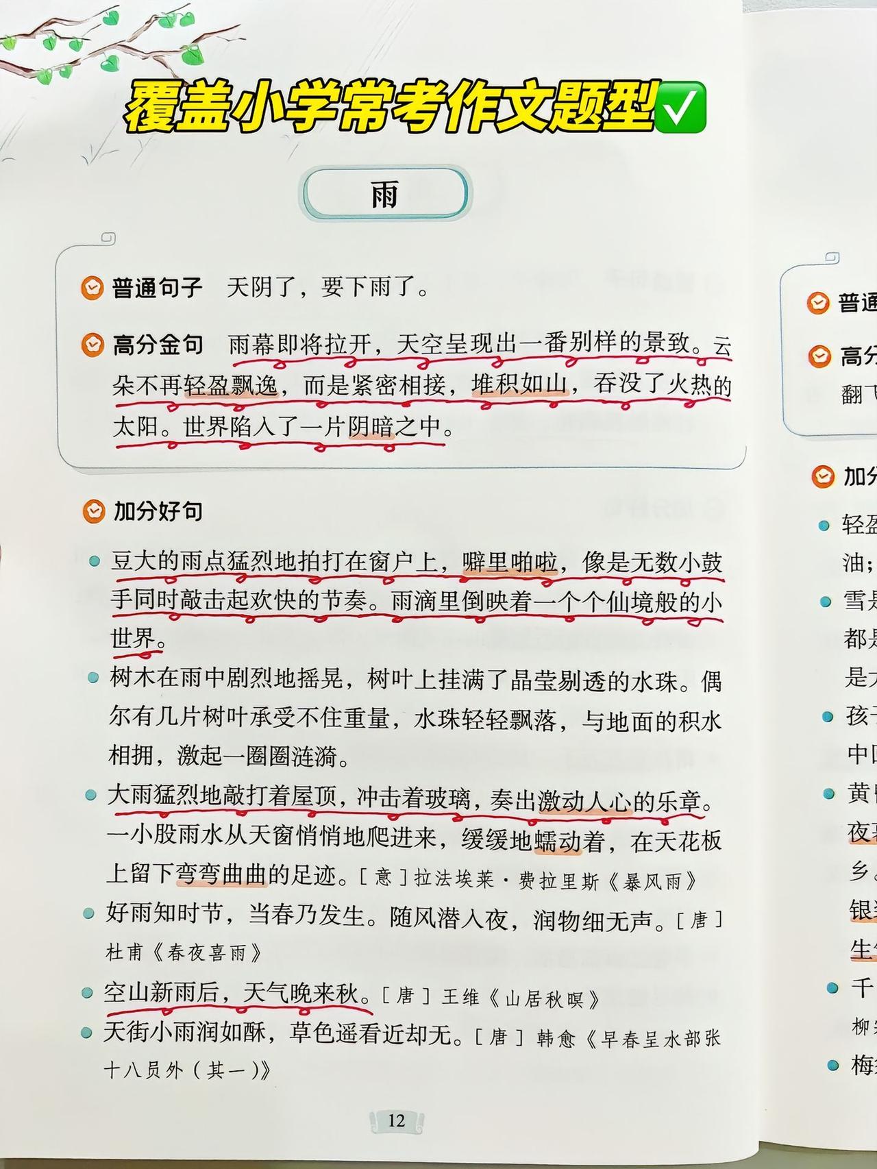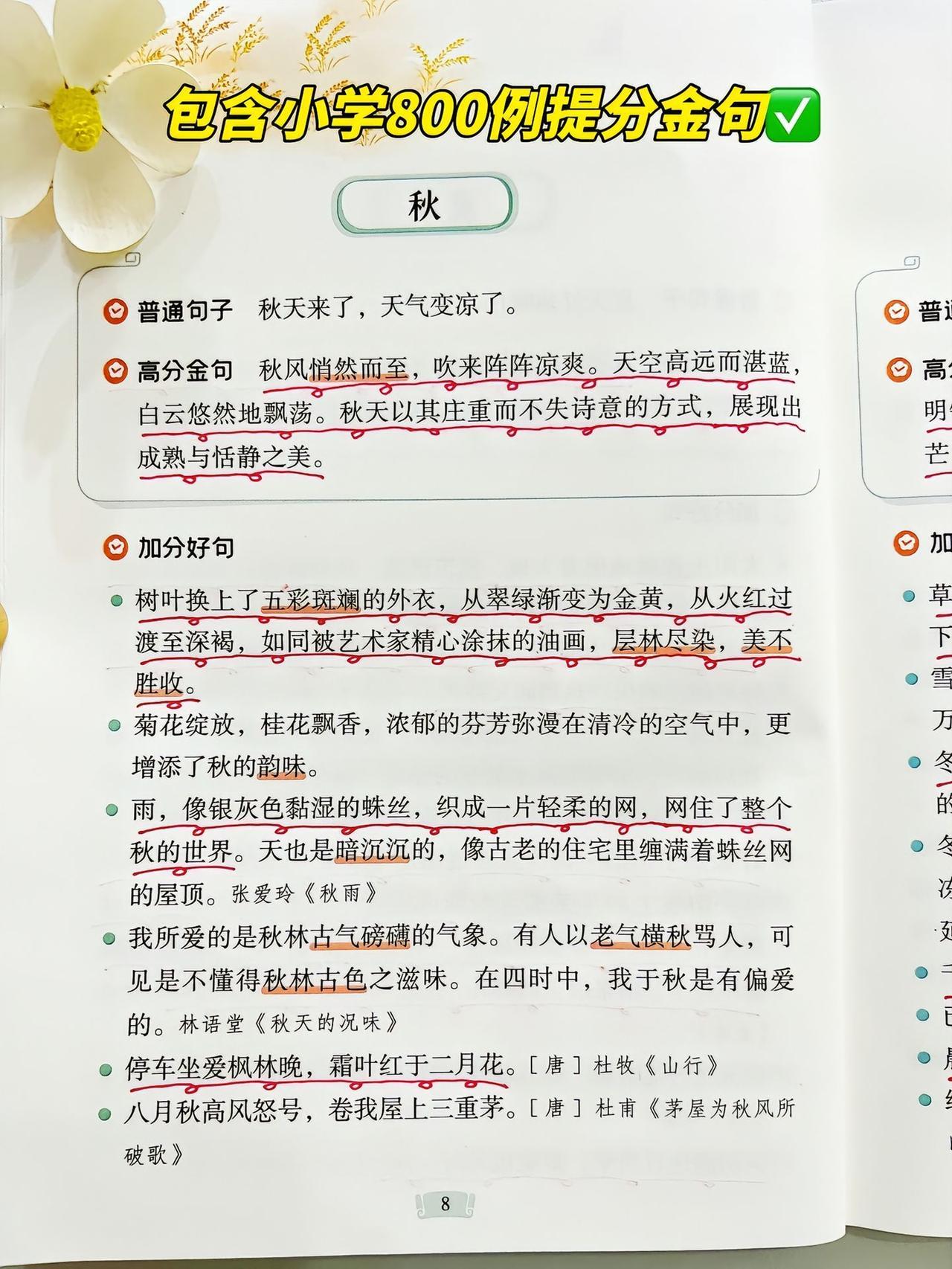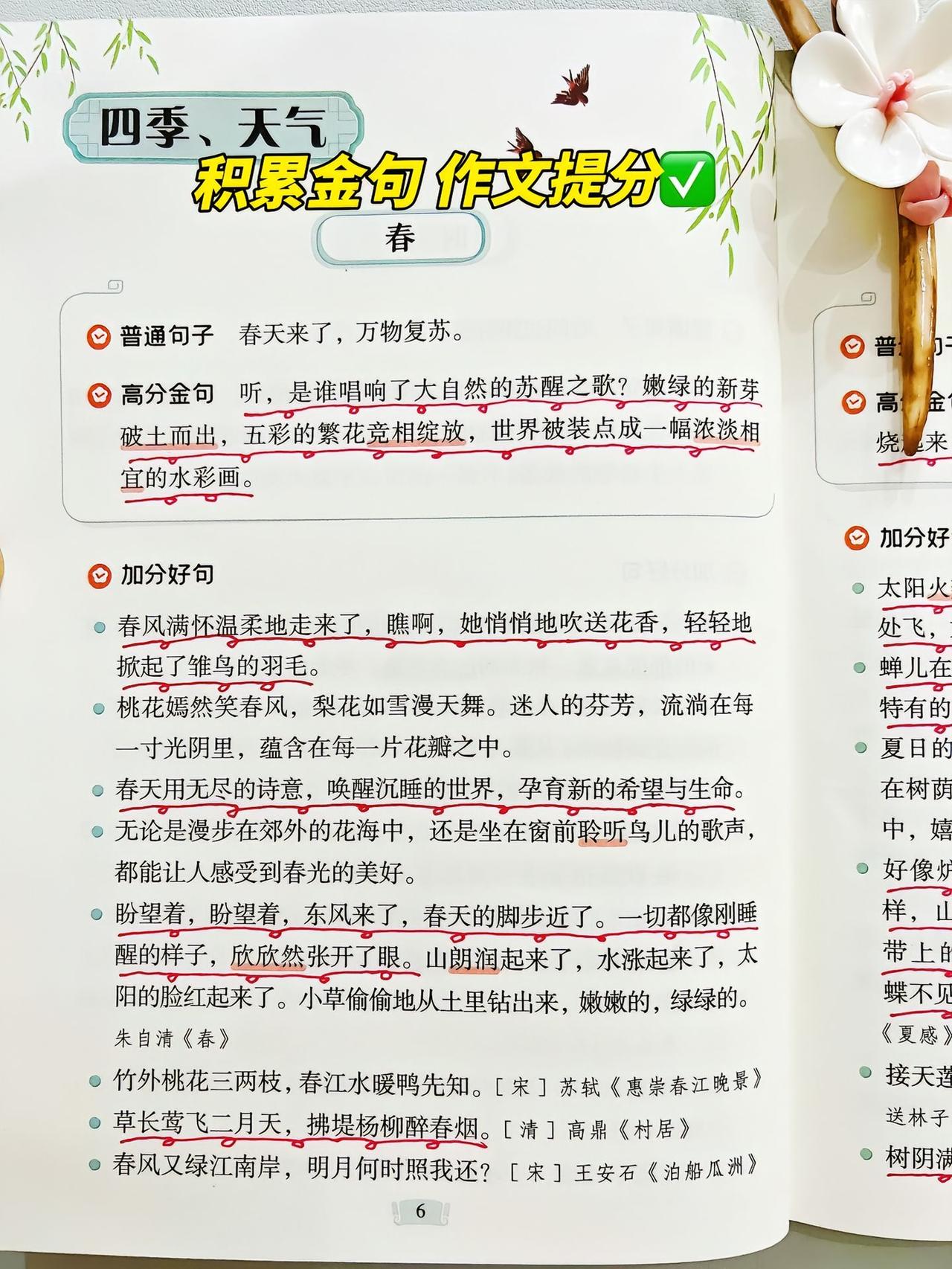 一位多年的语文老师坦言:孩子写不出好作文,多半是平时积累的素材太少了。特别是好词好句,很多孩子都欠缺积累。下面这份描写春夏秋冬的好素材,都有高分金句和加分好句,是孩子积累金句,作文提分的好资料,周少建议家长们一定要让孩子晨读多读一读,多背一背,把这些金句牢记,以后写作随时都可能用上,轻松写出一篇高分作文。#寻美三湘##长沙新朋友# 作文金句800例 小学生素材句子积累写作方法与技巧同步书籍
