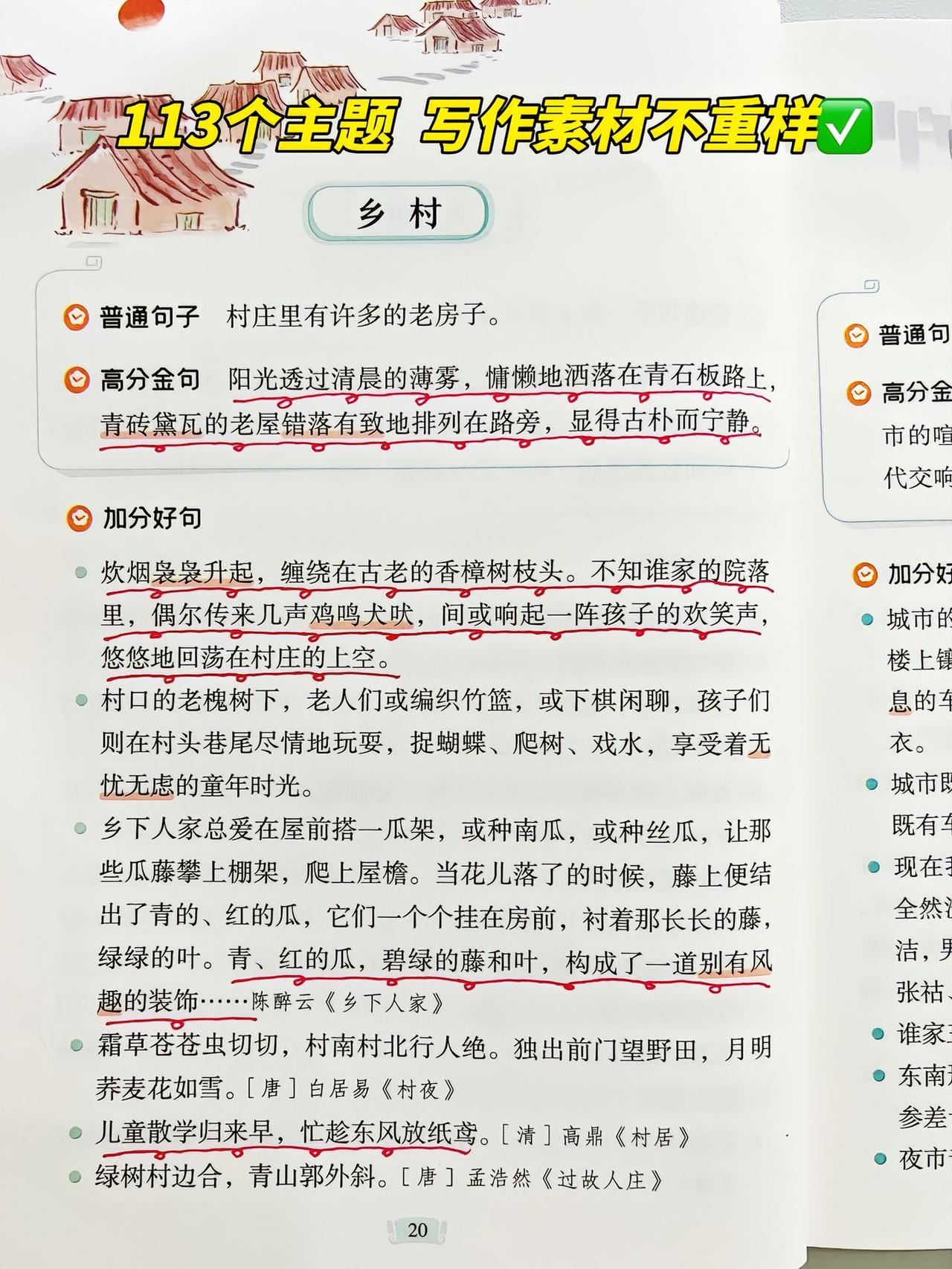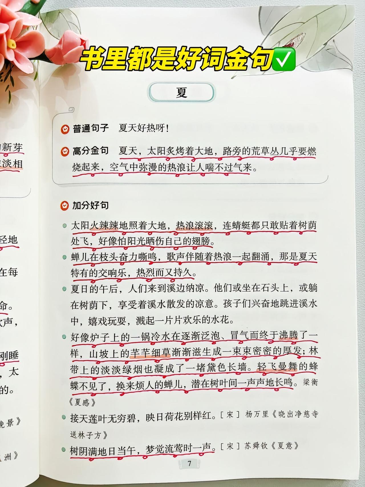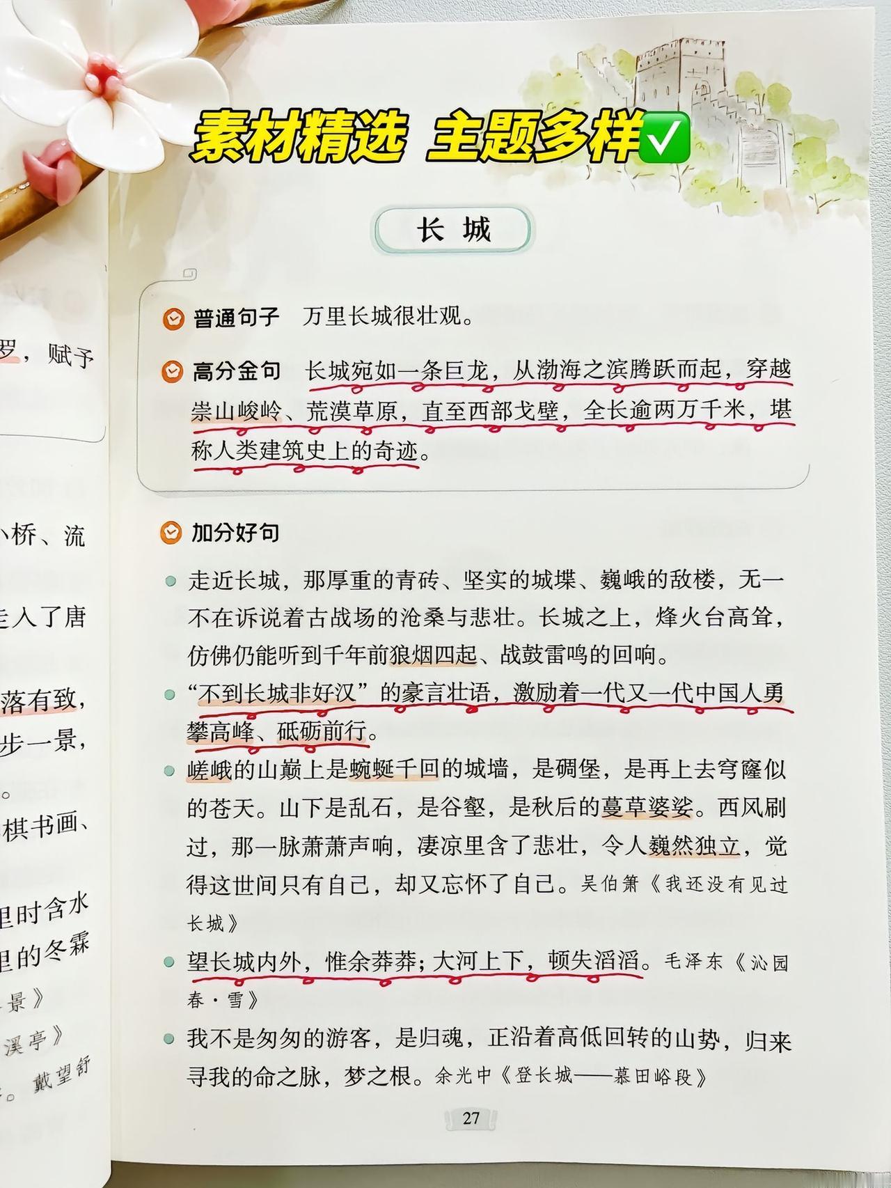 一位多年的语文老师坦言:孩子写不出好作文,多半是平时积累的素材太少了。特别是好词好句,很多孩子都欠缺积累。下面这份描写春夏秋冬的好素材,都有高分金句和加分好句,是孩子积累金句,作文提分的好资料,周少建议家长们一定要让孩子晨读多读一读,多背一背,把这些金句牢记,以后写作随时都可能用上,轻松写出一篇高分作文。#寻美三湘##长沙新朋友# 作文金句800例 小学生素材句子积累写作方法与技巧同步书籍