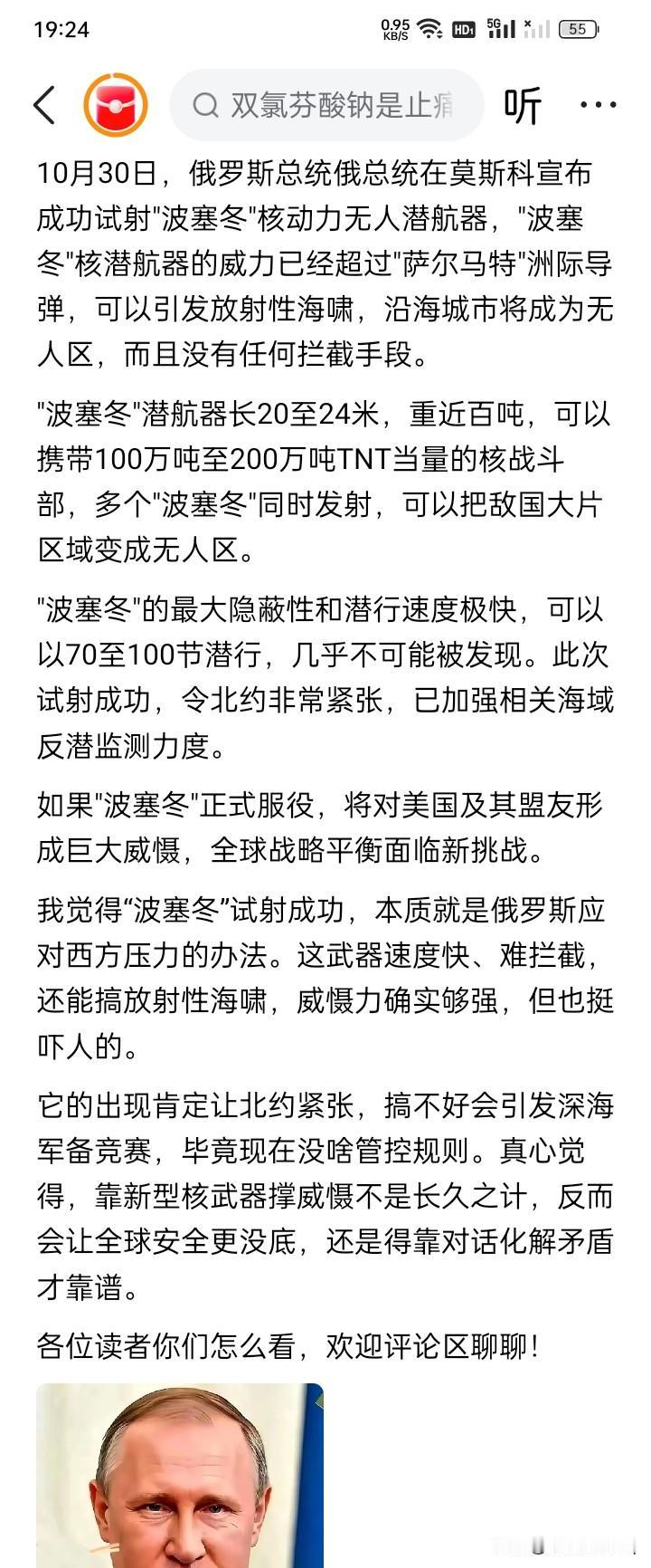 什么东西? 按照公开宣传的,“波寒冬”就是一件藏在水面下进行袭击的核武器,航程很远,威力很大——200万吨TNT爆炸当量。 “波塞冬”只能利用海水的可流动性,对沿海目标进行区域性的袭击和摧毁,它是不会区分任何军事和民用目标的,不管是平民还是军事目标,不管是儿童老人还是武装士兵,一句话,“波塞冬”就是以人类为敌。 如果有人敢使用“波塞冬”之类的武器进行攻击,似乎就站在了人类的对立面。