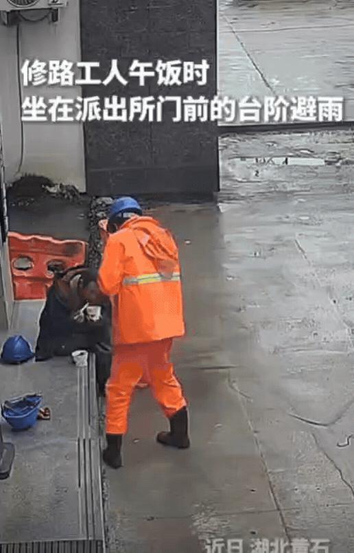 这民警火到人民日报了!湖北一群修路工人午饭时,为了避雨,来到派出所门前台阶坐下,不料,民警发现后,竟然跑出来对工人大喊:全部进来!里面有位置坐,雨天这么冷,都在门口坐着我看着不舒服!看到工人进来之后,民警还贴心为他们倒上热水。网友:这一杯开水,暖的是胃,更暖的是为城市建设者着想的那份真心! 在湖北,一场骤雨不期而至。派出所门前的屋檐下,悄然上演了一幕无声的场景,雨滴落下的声响,似在为这静谧之景轻敲节拍。一群修路的工人,或蹲或坐地挤在台阶上躲雨,那里是他们临时的避风港。雨丝斜斜地飘进来,他们就一边扒拉着饭盒里的午餐,一边笨拙地用手臂去遮挡。 这幅画面,恰好落入了值班室里一位民警的眼中。一种难以名状的不适如潮水般涌上他的心头,令他浑身都不自在。没有丝毫犹豫,他立刻推门而出,朝着工人们大声喊话,邀请他们进到屋里来。他轻声说道:“外面寒意料峭,冷意袭人,相较之下,这屋内暖意萦绕,着实暖和不少。” 工人们起初有些不知所措,连连摆手推辞。或许在他们心里,那身沾着尘土与汗水的工装,会弄脏了干净的地板;或许他们早已习惯了被当作“外人”,下意识地选择“不给别人添麻烦”。这般小心翼翼的拘谨之态,实则蕴含着对一份尊重的深切渴慕。 但那位民警没有放弃,态度十分坚决,他转身就往屋里走,示意大家快跟上。工人们这才犹豫着走了进去。随后,民警贴心地为众人一一斟上热水。那热水盛于一次性杯中,尚带着腾腾热气,温暖之意似也弥漫开来。这杯水,温暖的不仅是手,更是人心。 此事于网络上广泛传播后,瞬间引发关注热潮,网友们纷纷点赞,赞誉之声如潮般涌来,点赞数量不计其数。网友们纷纷感慨,这位警察是真正将百姓放在心间的好警察。他心怀苍生、情系民众,以实际行动诠释着为人民服务的宗旨,令人动容与敬佩。大家赞美的,不仅是他的职业身份,更是他这个人本身的善良。他看到的不是工人们可能带来的“麻烦”,而是他们在雨里吃饭的“辛苦”。 这般毫无功利之念的善良,源自本能的同理心。它不掺杂丝毫利益考量,纯然出自内心对他人境遇的感同身受,是人性中至纯至善的流露。它悄无声息地拆掉了一堵心墙,用最直接的行动告诉这些劳动者:你们不该被区别对待。 其实,这座城市里有两条路。一条是工人们正在挥汗铺设的物理道路,它们是城市的骨架。另一条路,是由这份善意铺就的人际情感通途。它宛如城市的灵魂温度调节器,静静流淌,悄无声息地决定着整座城市的温暖刻度。 我们常常表彰劳动者的伟大,但真正的尊重,或许就藏在这样一件“请进屋里来”的小事里,藏在一句“不把你当外人”的真心话里。当这种温暖成为社会的常态,我们脚下的路和心里的路,才会同样坚实宽阔。