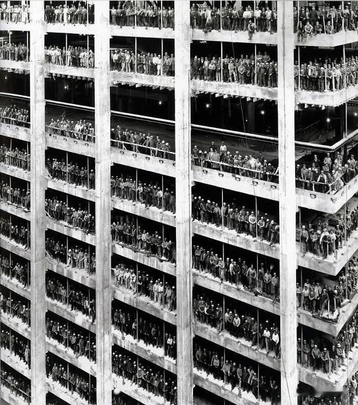 1964 年 8 月19日,纽约市大通曼哈顿银行大楼(One Chase Manhattan Plaza)即将竣工之际,3000 多名工人合影留念。