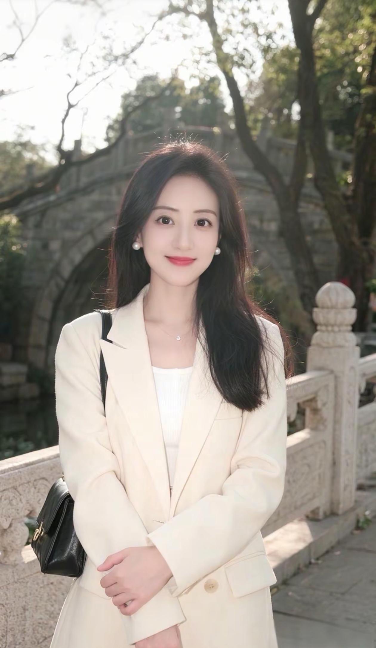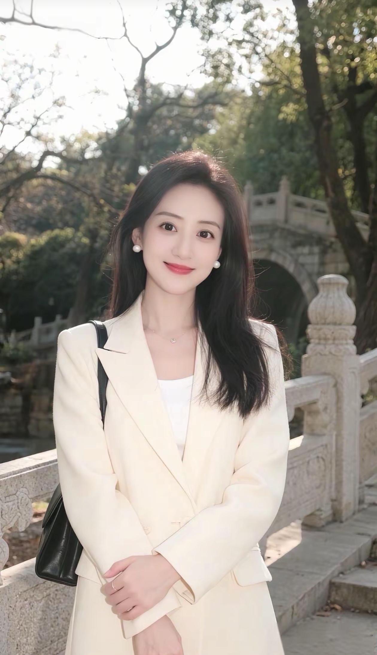 优雅职场风,浅米色西装外套,搭配珍珠耳环,尽显知性美!