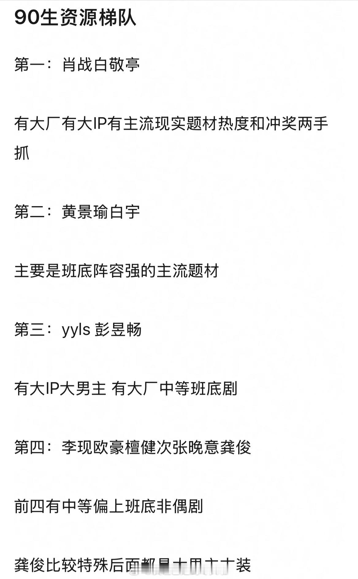 90生资源梯队