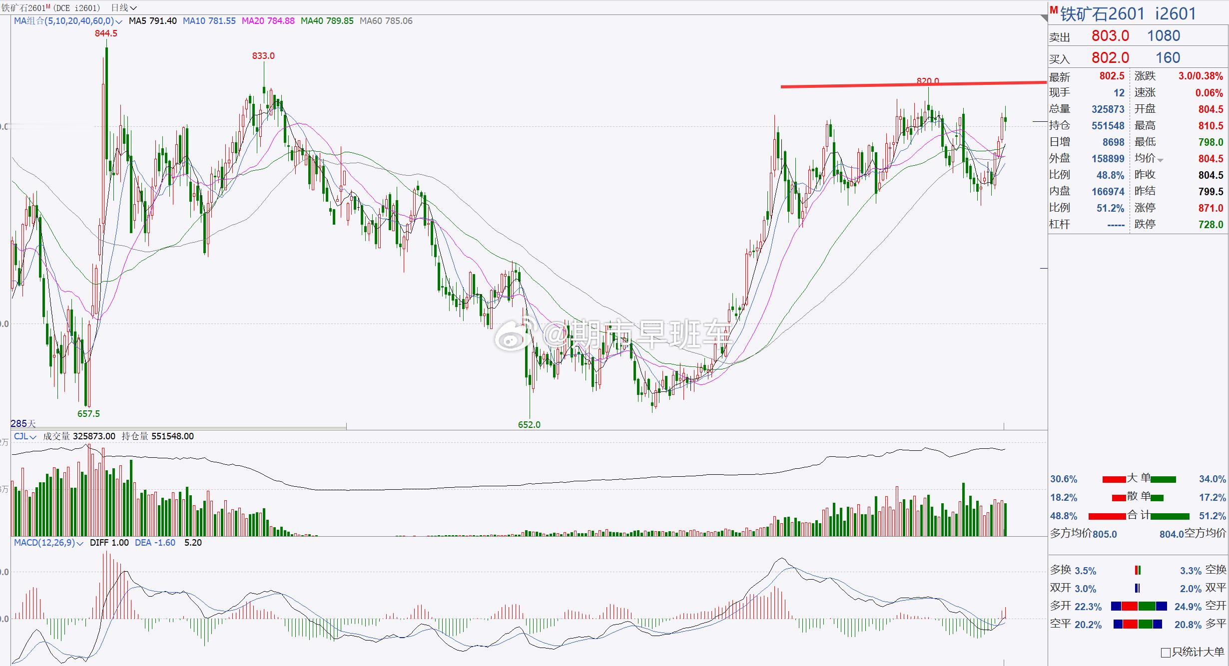 3、【铁矿石2601】铁矿石关注800一带!
