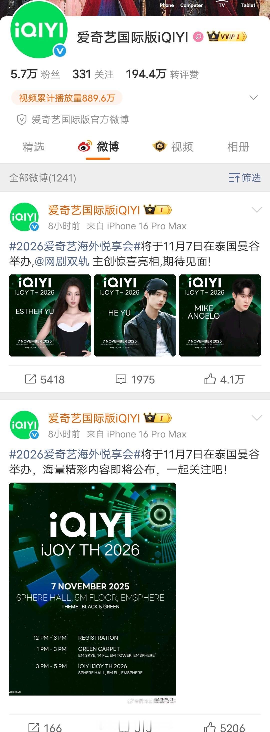 虞书欣今天刚官宣11.7的爱奇艺泰国悦享会,目前为止只有双轨剧组会出席,这活动还能办下去吗?