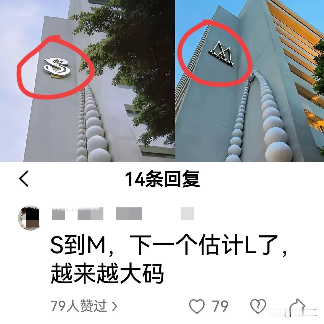 笑不活了! 小汪总酒店改名字了,网友调侃:从S码涨到M码,码数越换越大了,下一个是不是该L、XL了?留给汪总的字母可不多啦! 笑S,这一届网友可真是脑洞大开呀! 酒店是当初汪总为大S量身打造“S Hotel”,满是爱意;离婚后先把S加一竖变“$”,又干脆换成新女友名字首字母“M”。 不得不说网友都是段子手天才,调侃归调侃,汪总这回换名字,倒有种“既往不恋,纵情向前”的洒脱! 管他字母怎么换,生意照做,生活照过,过去的就让它过去吧。 人生哪有一成不变的招牌?不合适就换,不纠结不内耗,潇洒转身就是新开始! 你觉得下一个字母该是什么?