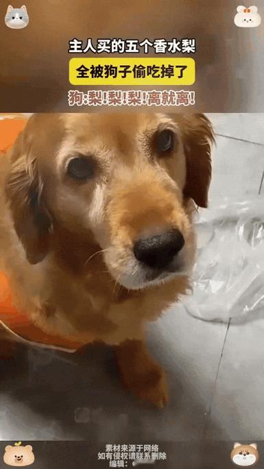 笑不活了!陕西,女子买了几个香水梨回到家就放桌子上后,就去洗澡了。结果洗完发现连梨带袋子都不见了,这就奇怪了她四处找,结果把屋里全部找完也没有见一个梨。于是灵机一动想到肯定是狗子,就问它:五个梨,去哪里,你是连核带把一起吃进去了吗。它就是一言不发,还表现的非常委屈巴巴的样子。狗子:都是长嘴的谁吃不是个吃? 这只馋嘴狗子也太会“掩耳盗铃”了吧!主人买了心心念念的香水梨放桌上,刚洗个澡的功夫,连梨带袋子就凭空消失,把屋子翻遍都没找着,一琢磨就知道是这“嫌疑狗”搞的鬼! 明明之前还凑过来被主人告知“不是大鸡腿别惦记”,转头就趁主人洗澡空档,把五个香水梨一个个叼进狗窝,连核带把吃得干干净净,连作案工具(梨袋子)都藏在窝里,主打一个“毁尸灭迹”! 被主人抓包后,还装出一脸无辜委屈的样子,清澈的小眼神使劲证明自己清白,主人一松口就撒欢跑路,那心虚的小模样简直要笑死人!查了监控才实锤全程,这狗子又精又馋,知道主人没空盯它就偷偷下手,果然没有一只狗狗能抗拒美食的诱惑,这操作也太可爱了[捂脸][捂脸]