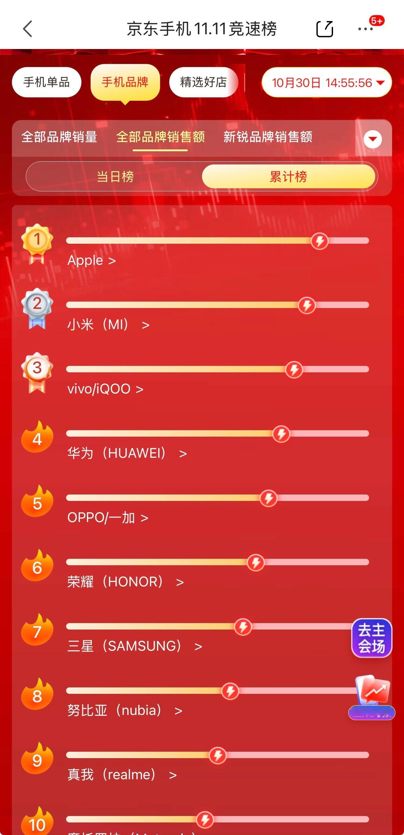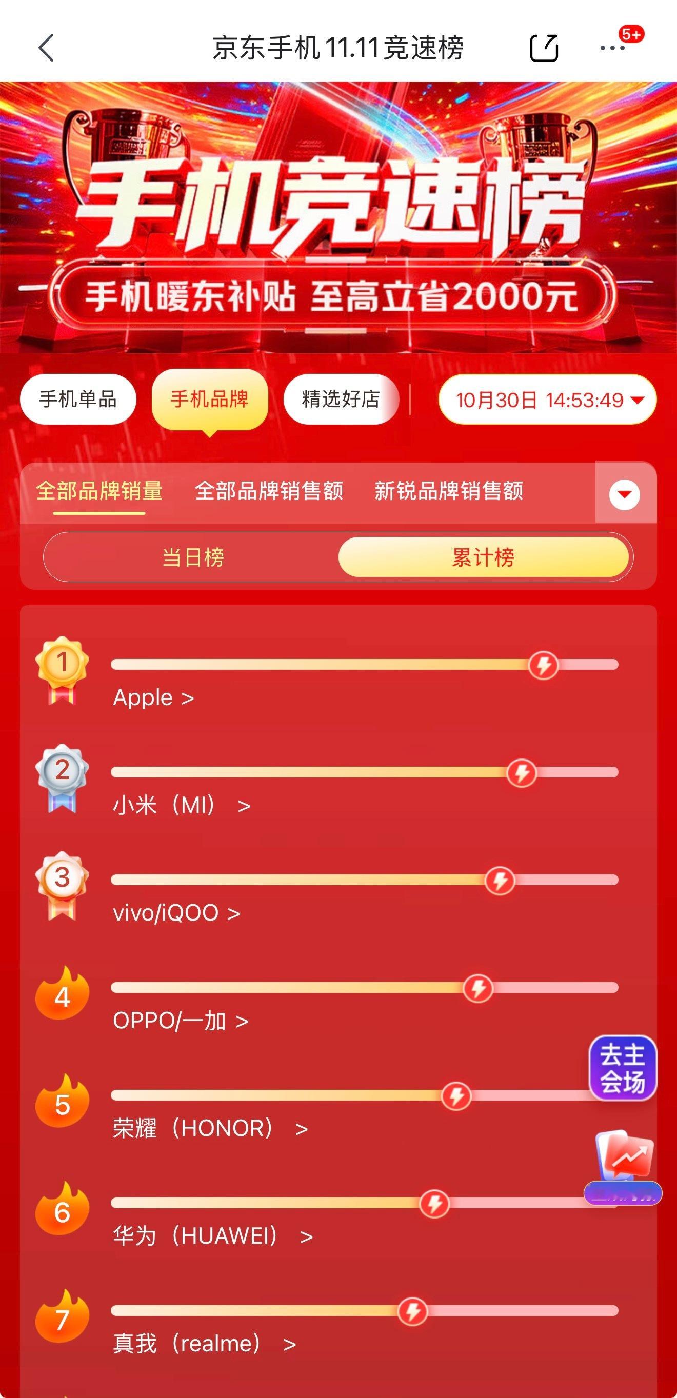刚刚看了“京东双11手机竞速榜”,国产手机以华为、小米、vivo势头最猛!vivo+iQOO 在安卓阵营更是表现亮眼,虽然vivo X300 Pro和iQOO 15才刚刚发布不久,不过也是在4000-5999元价位累计榜前列。全部品牌销量和销售额的累积榜里,vivo&iQOO也是稳居前三,和华为、小米一起撑起国产手机新势力!