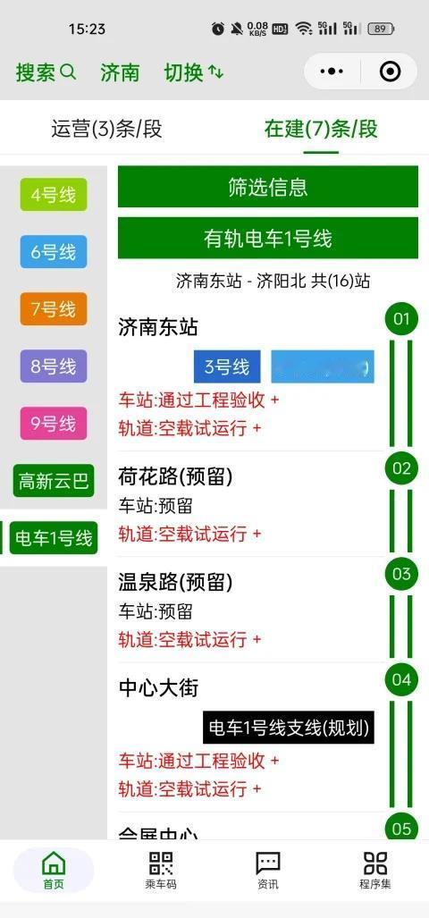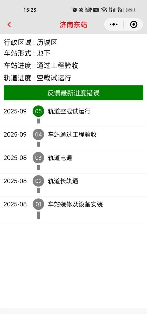 济南地铁电车1号线进度跟踪(2025-10) 慧信息每天搜集和整理全国地铁运营资讯与在建进度信息。 电车1号线(济南东站-济阳北),计划开通时间:2026年3月。11座(地下:8 地面:1 高架:2)车站中,11座已封顶,其中11座通过工程验收;30个轨行区间中,30个已贯通,其中30个空载试运行。 本月新增进度:无