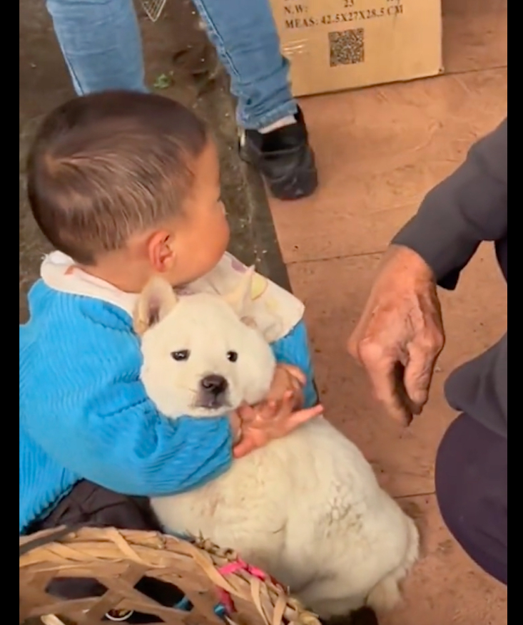 【男孩在狗市抱住一只狗,奶奶怎么劝都不松手,两个清澈灵魂的相遇】