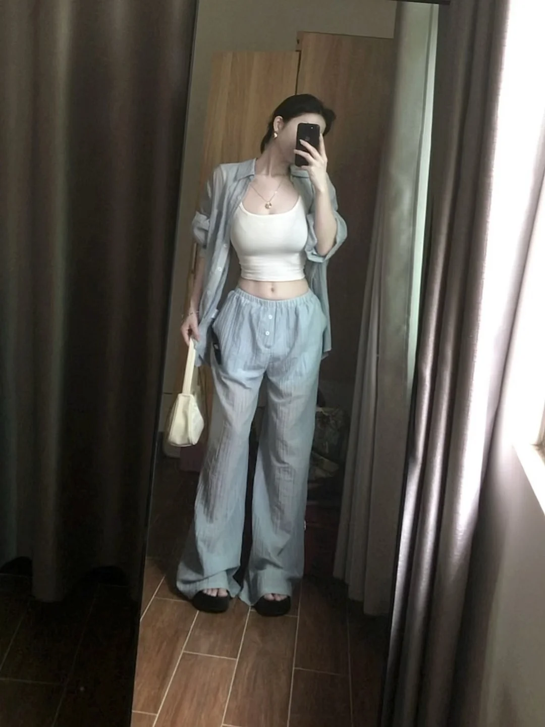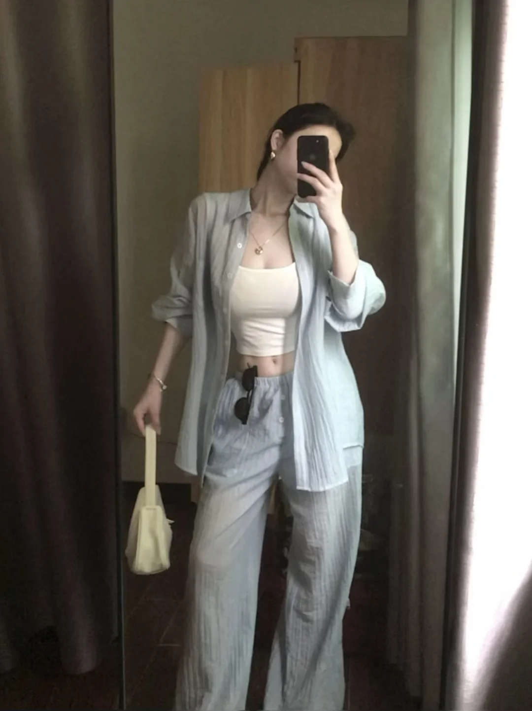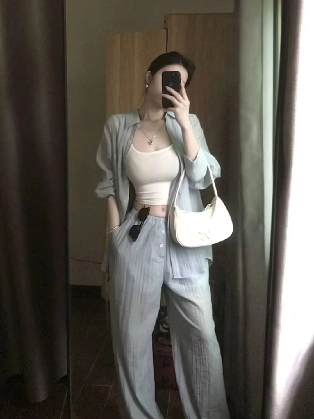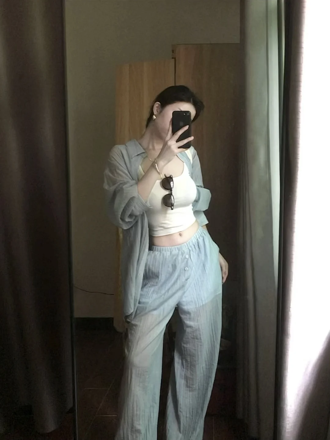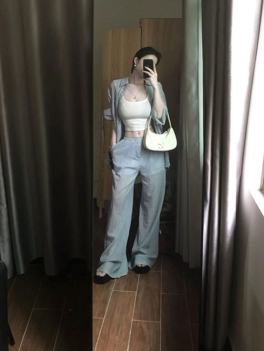 浅蓝色系穿搭尊的很日常慵懒美女感唉~