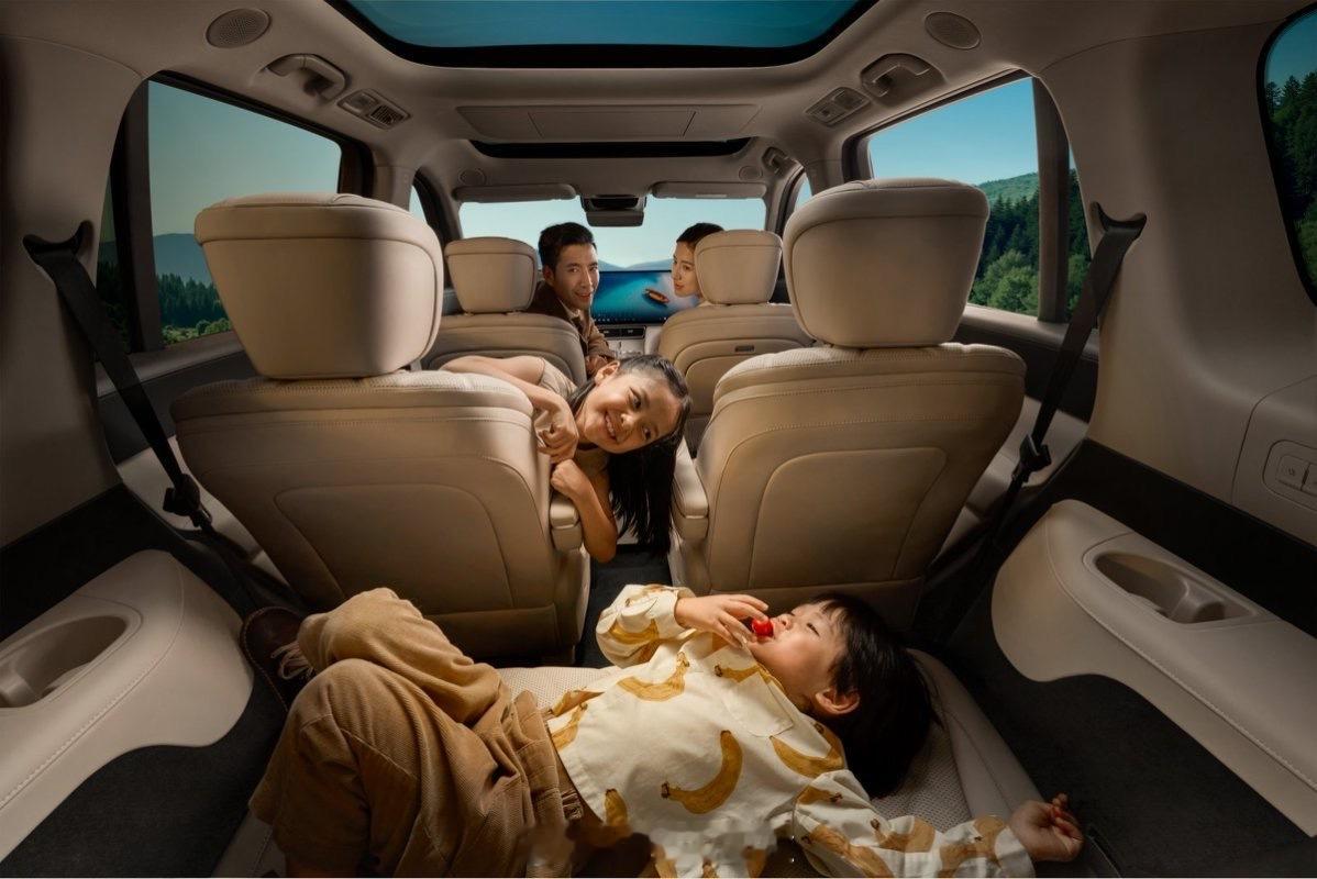 更豪华,前排30吋6K巨幕+后排17.3吋娱乐屏、伯牙之音23扬声器、256色氛围灯,全车静音玻璃+米其林胎,直接变身“双IMAX家庭影院”。