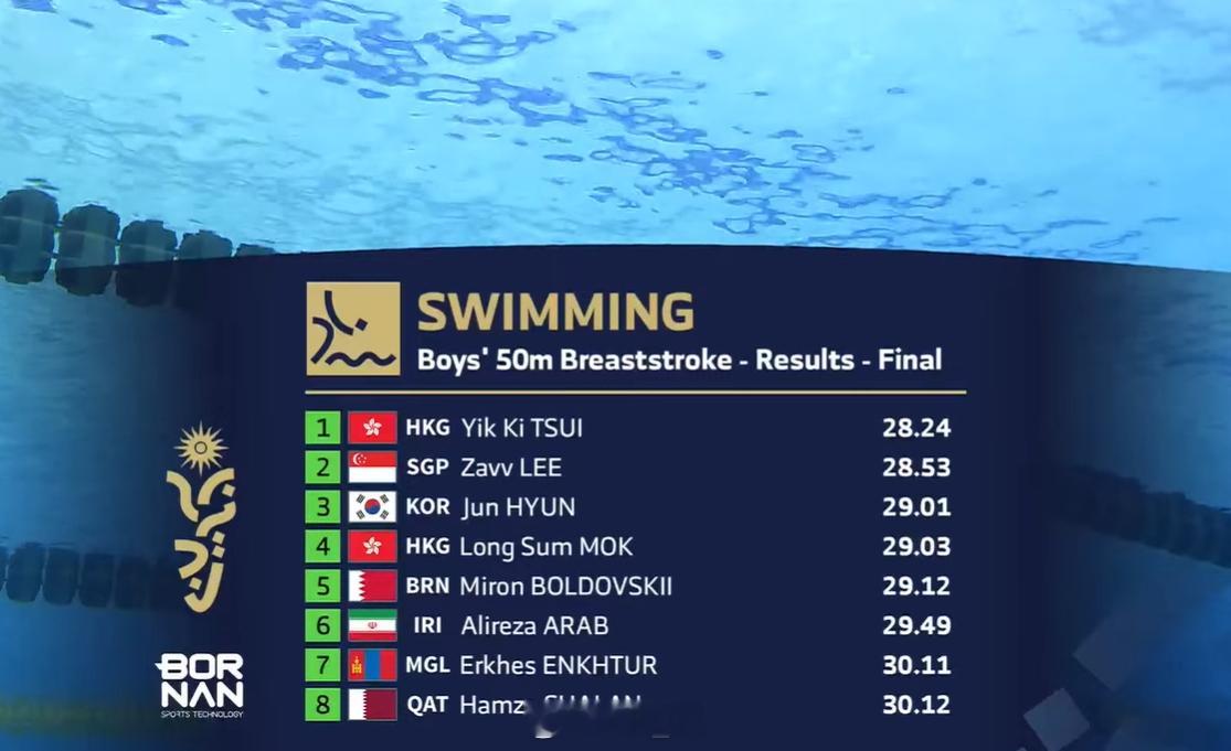 亚洲青年运动会 男50蛙决赛