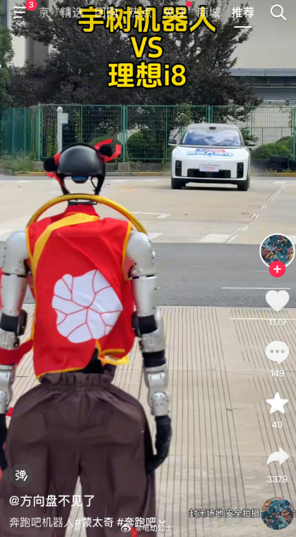 有人用宇树机器人和理想i8来了一次赛跑,最后机器人因为传统系统过热躺了...