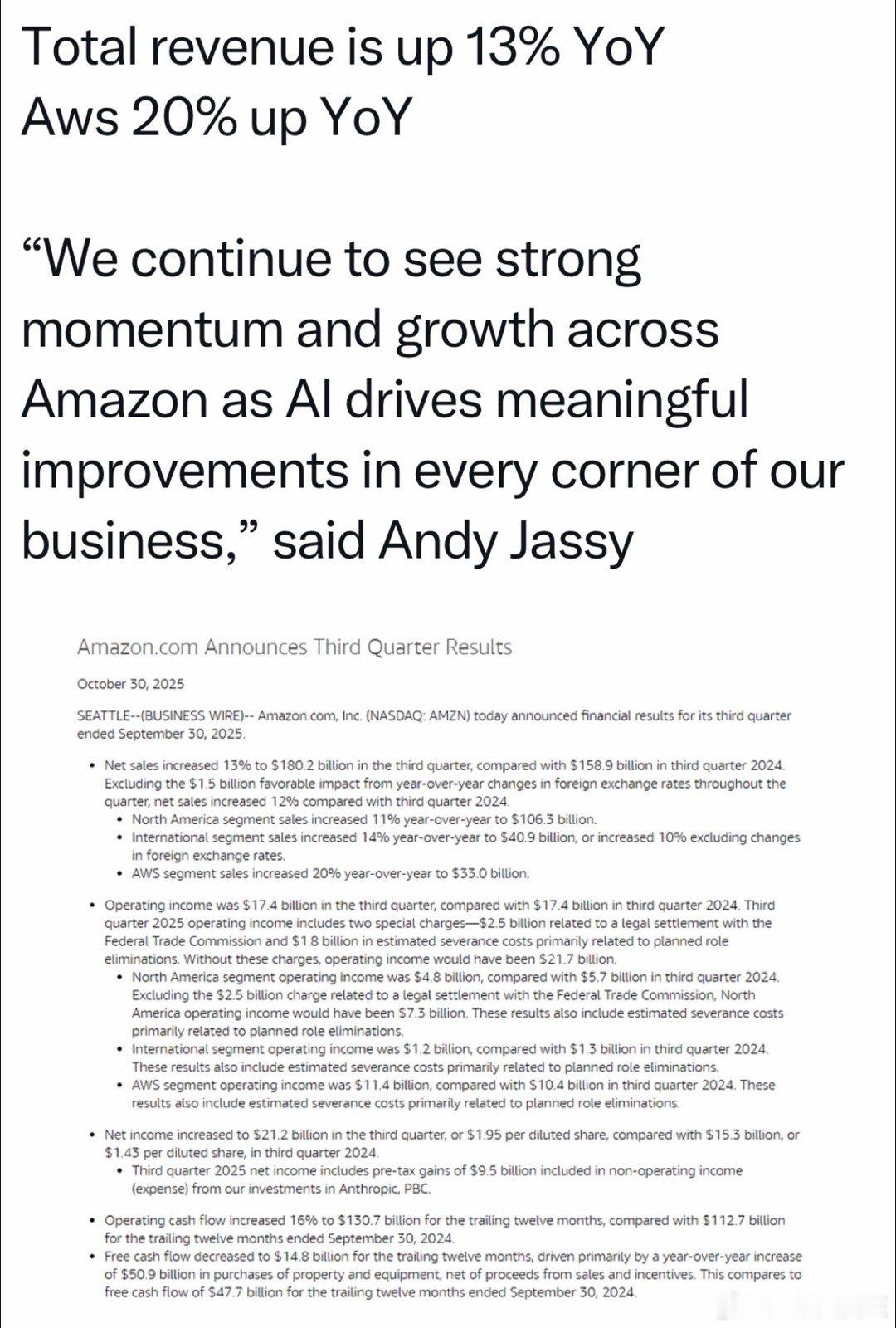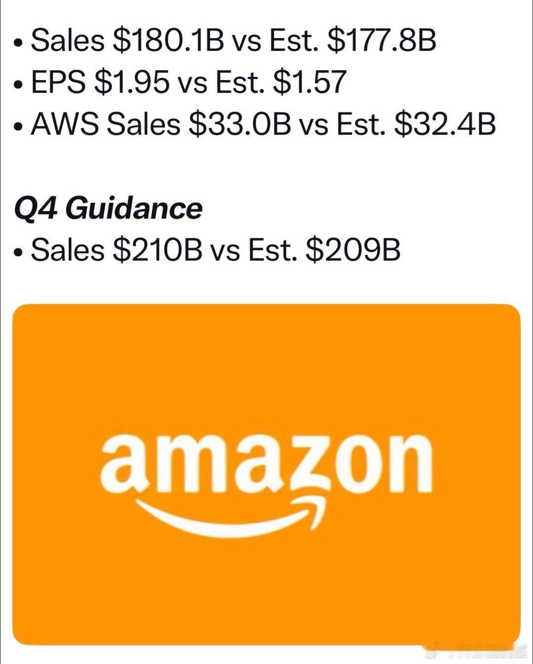 Amazon Q3财报全面超预期,Q4营收指导上调