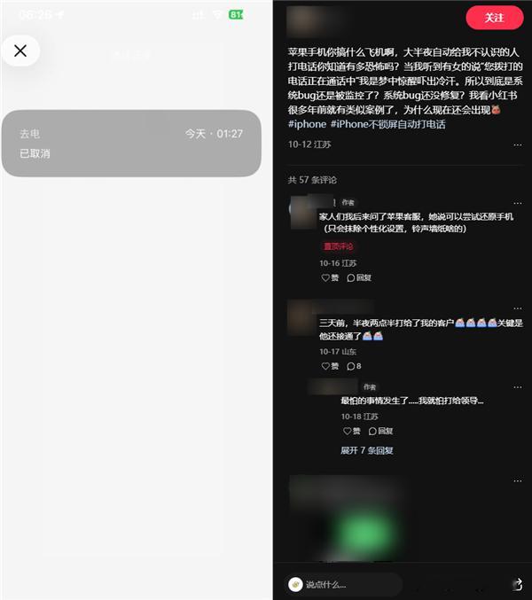 多名iPhone用户反映半夜锁屏自动拨号,新老机型都有这问题,2024年就有人反馈了。