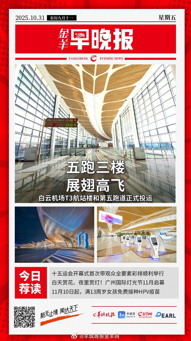 #金羊早晚报# 白天赏花、夜里赏灯!广州国际灯光节11月16日启幕 11月10日起,满13周岁女孩免费接种HPV疫苗 300元以下难买真羽绒服?记者调查:核心成本在126元至248元之间 4只小鼠航天员要上太空做什么呢?训练画面曝光! “超级月亮”、狮子座流星雨极大等将亮相11月天宇 官方通报湖南一女童被水泥杆砸中身亡:电杆权属存较大争议 广州白云机场迈入“五跑三楼”时代,如何为大湾区增添澎湃动能? 高清剧透来了!十五运会开幕式首次带观众全要素彩排顺利举行 世界黄金协会:第三季度全球黄金需求总量1313吨,刷新历史纪录 TVB举行2026年节目巡礼,逾80位艺人出席推介明年新节目 《新闻女王2》定档11月5日,佘诗曼黄宗泽成对手 江一燕在综艺《假期中的她们》(《乘风2025》收官衍生节目)舞台发言时首次公开离婚消息 卢浮宫抢劫案已有7名嫌疑人被捕 巴基斯坦军方消息人士称同意恢复与阿富汗会谈 美国参议院以51票赞同、47票反对的结果通过决议,终止特朗普在全球范围内实施的全面关税政策 更多精彩报道,请扫码关注羊晚全媒体报道!#特朗普全面关税被参议院批准终止##网警侦破假借高薪招聘实施侵公案##江一燕官宣离婚众女星留言鼓励#