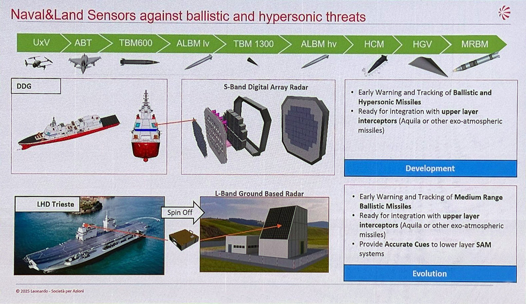 中外舰闻[超话] 烽火问鼎计划 每天认识一件兵器 Leonardo公司在SeaFuture 2025上展出的关于综合防空反导解决方案的PPT(图2)里出现了很模糊的意大利🇮🇹海军“下一代”DDX导弹驱逐舰的模型(图1),主要展示了🆕的全数字化大型S波段雷达阵面(图2,上);另外也展示了基于Kronos Power Shield的全数字化大型L波段陆基预警雷达(图2,下)。