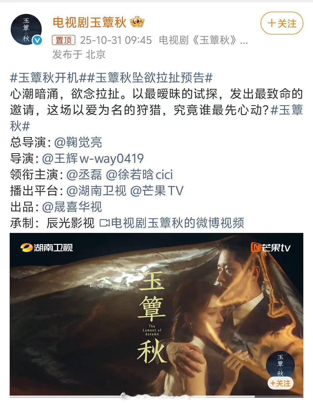 玉簟秋开机最期待的民国虐恋题材开机了!丞磊和徐若晗的拉扯以及性张力真是绝了!!开